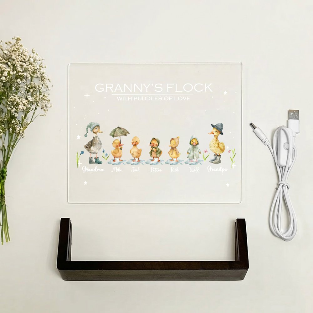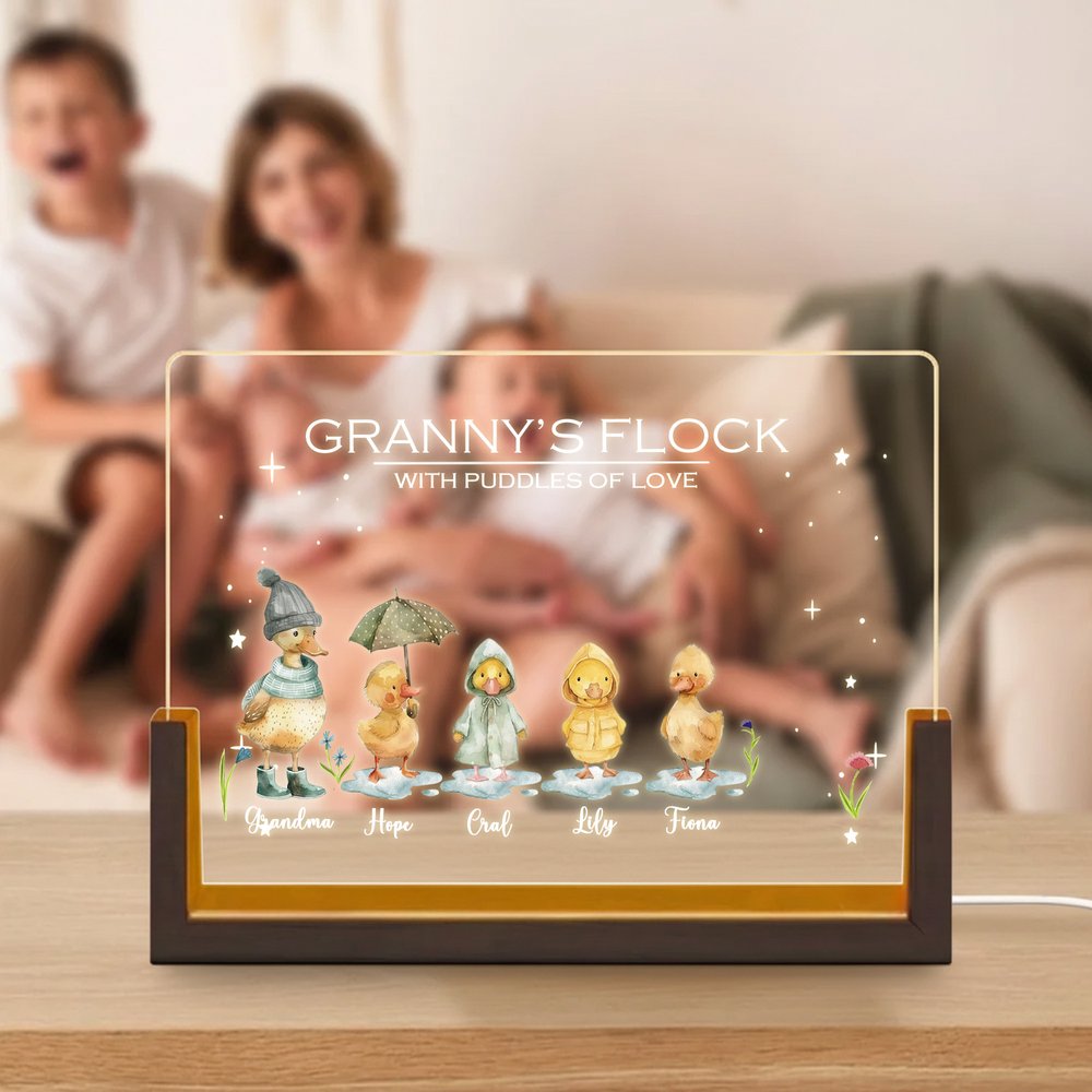 Personalised Cute Duck Family LED Night Light with Names and Wooden Base Home Decor Mother's Day Birthday Gift for Mom Grandparent Family
