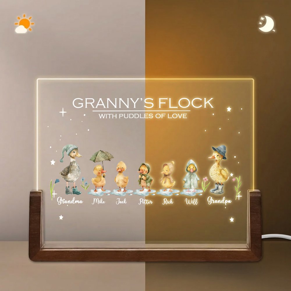 Featuring a charming watercolor illustration style, this nightlight brings your loved ones to life as cute duck characters. It offers full customization, allowing you to add a special title and the names of multiple kids—each duck corresponding to a family member, making your unique family story vividly shine through the light.