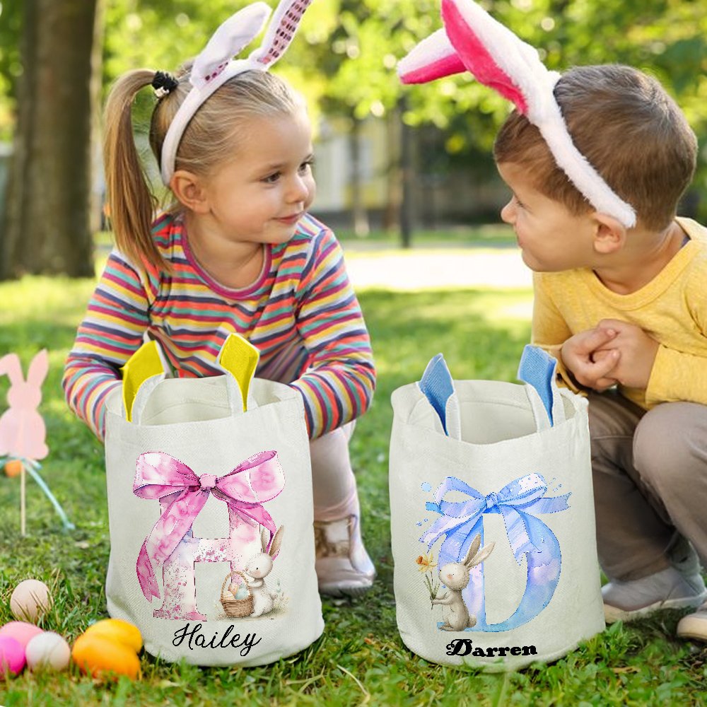The bag features a variety of Easter bunny and bow initial designs, and you can choose the pattern you like. The bag ears are available in 4 colors and can be customized with names and initials.
