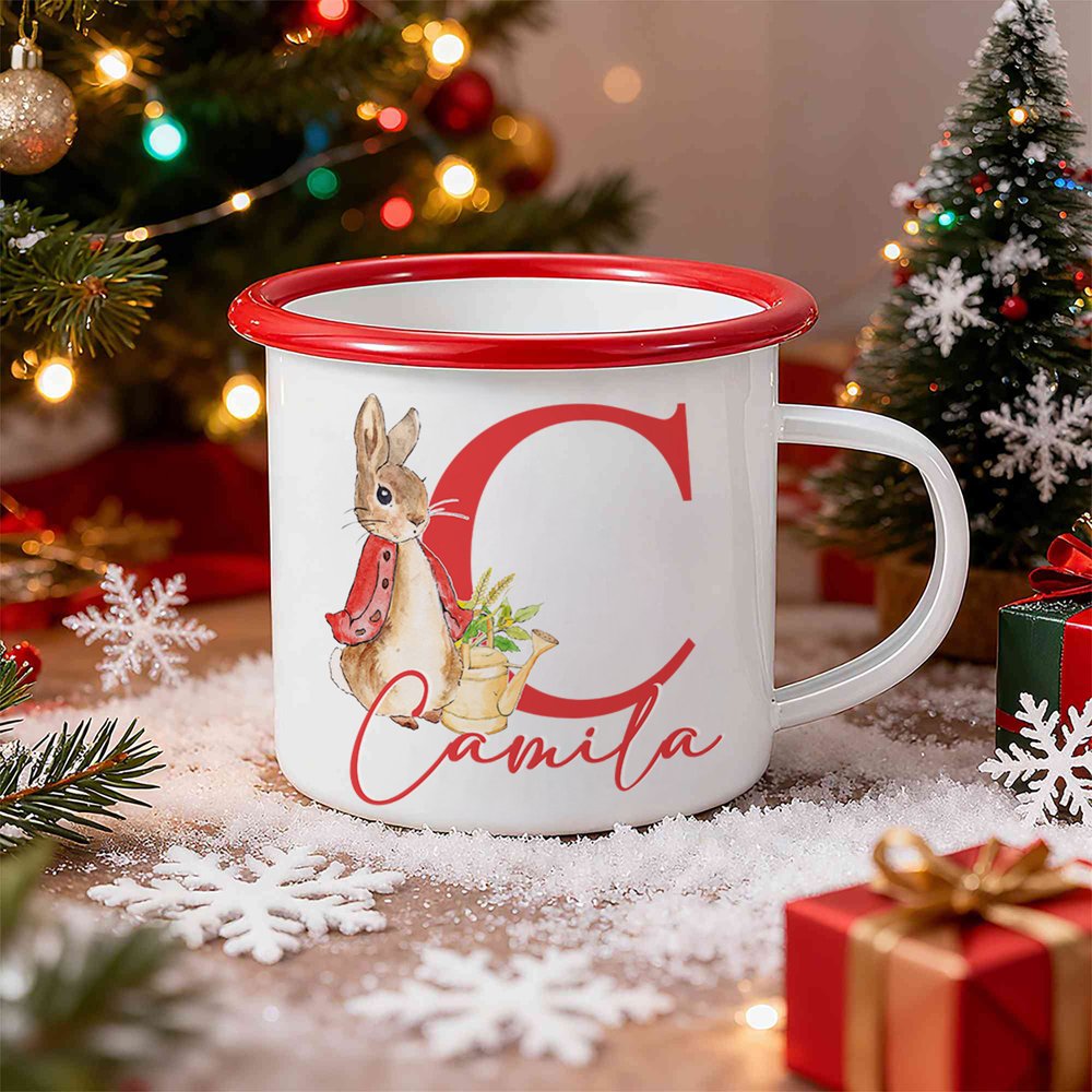 The mug incorporates cute bunny elements. The cute bunny design adds a touch of whimsy and joy to the mug, and you can add the mug with the recipient's initials and name, making it a unique back-to-school or Christmas gift and letting your child feel special warmth in the new semester.