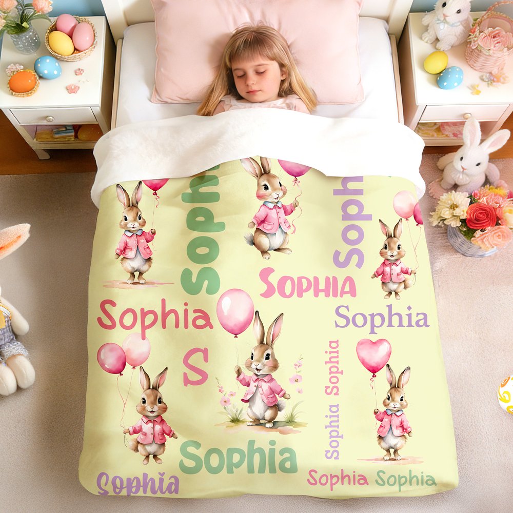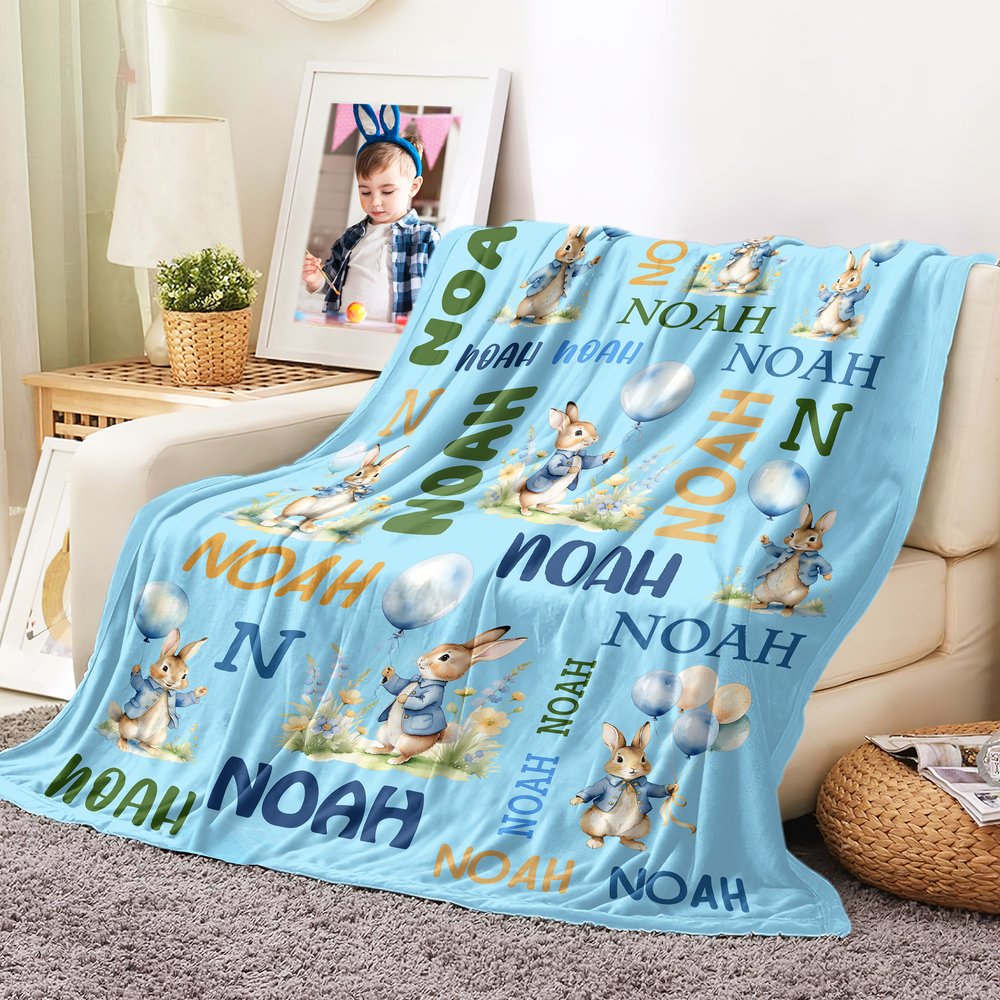 Personalised Cute Easter Peter Rabbit Soft Throw Blanket with Name Home Decor Easter Baby Shower Gift for Newborns Kids