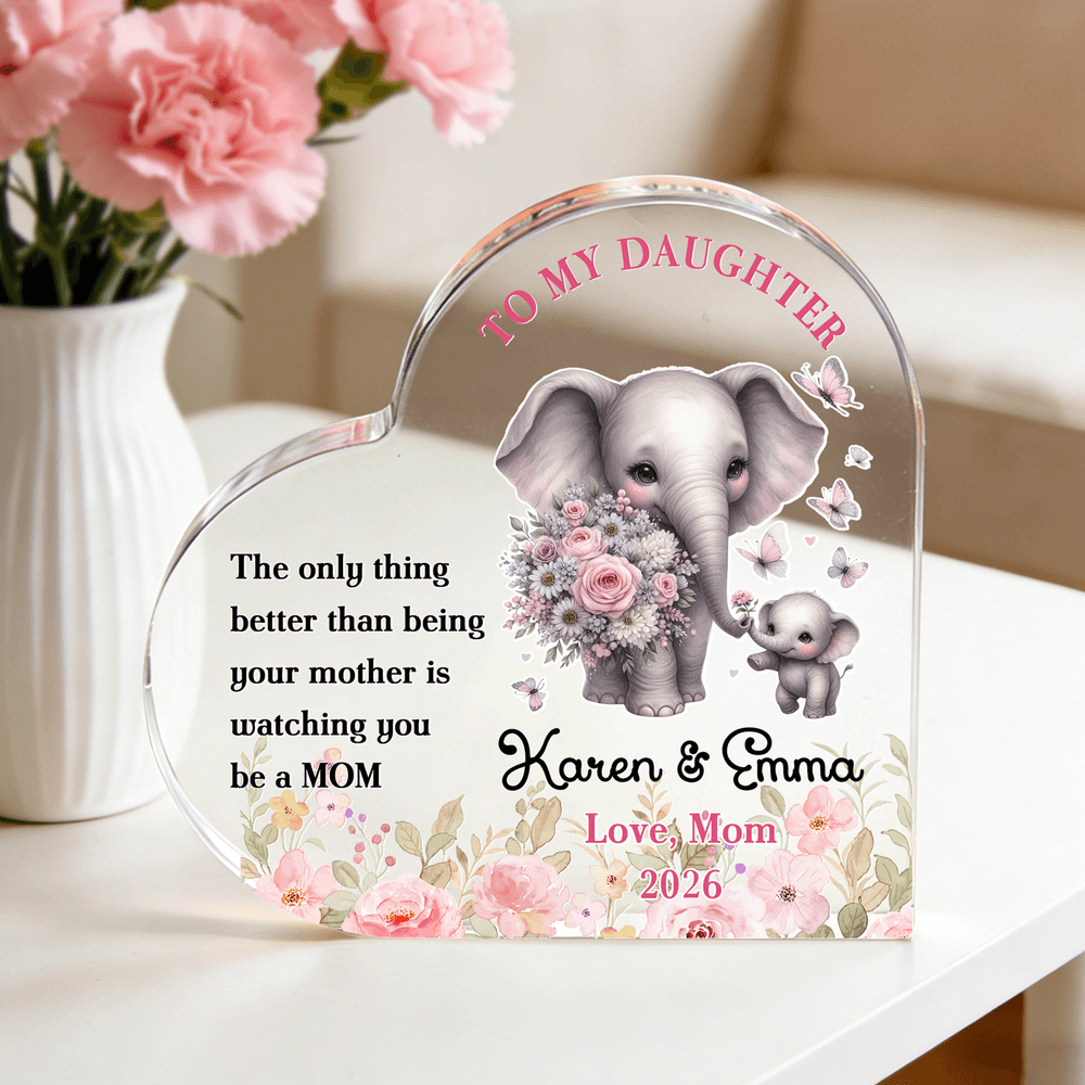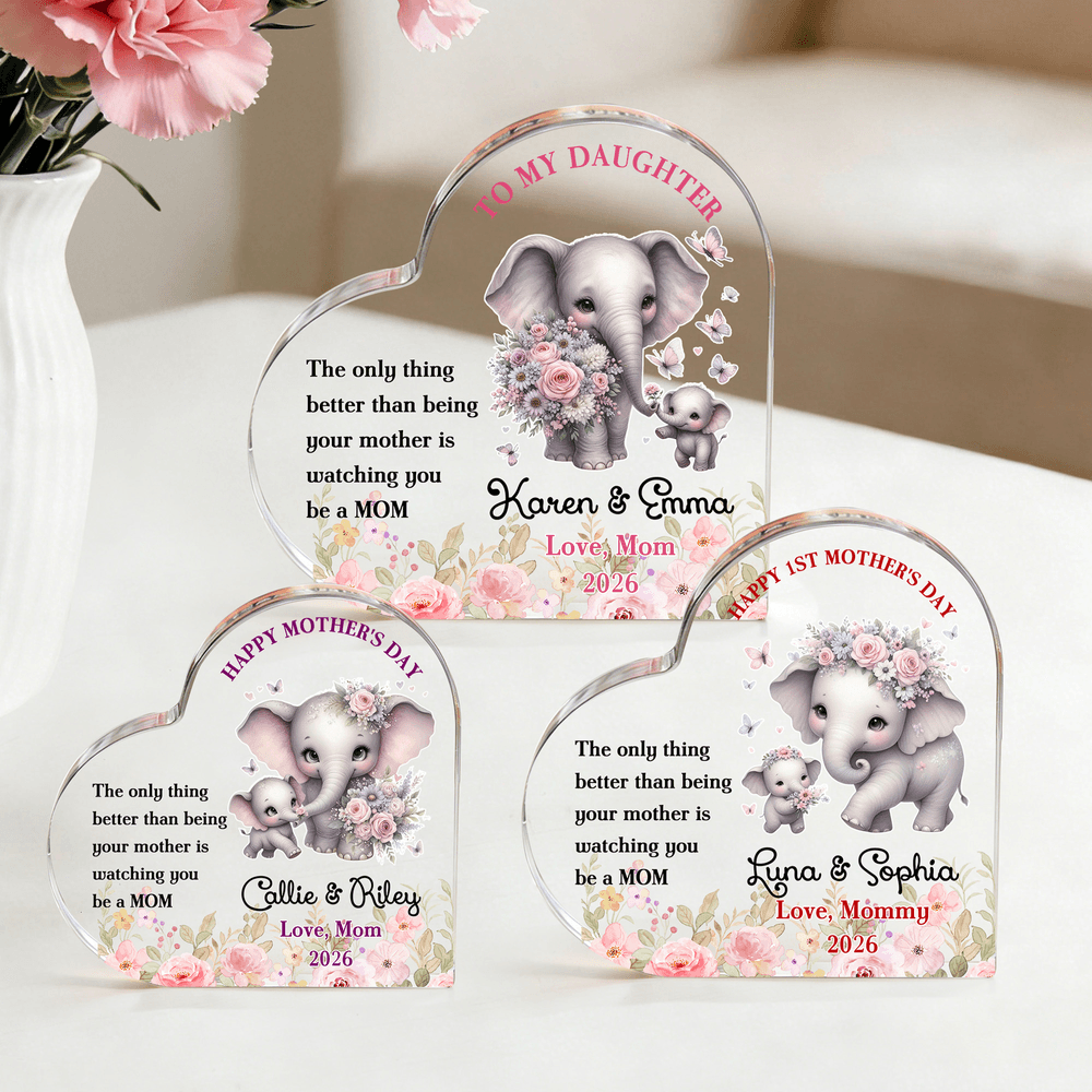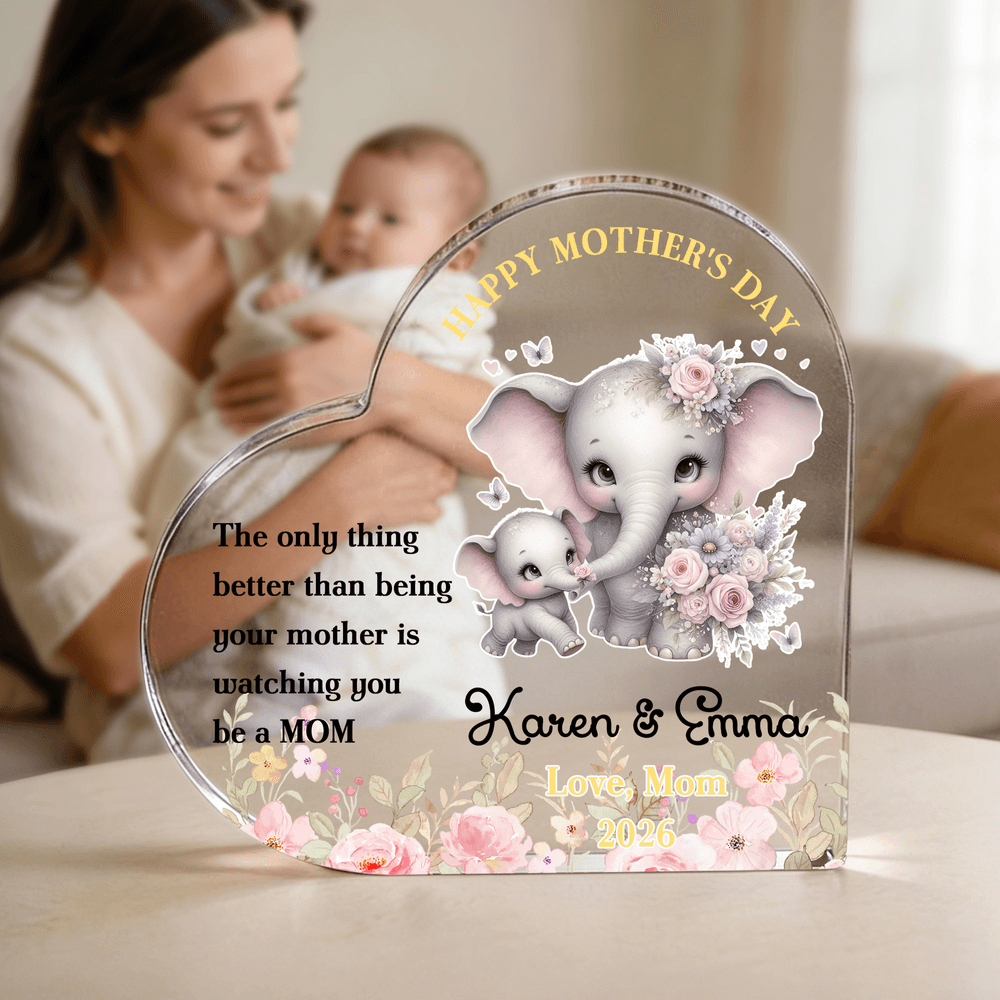 Centered around a mother-and-baby elephant cartoon, this design features delicate pink floral and butterfly accents. The mother elephant and her baby hold bouquets, creating an adorable and gentle look that exudes warmth. Customizable with names and Personalised messages, allowing you to infuse your heartfelt sentiments into every detail.