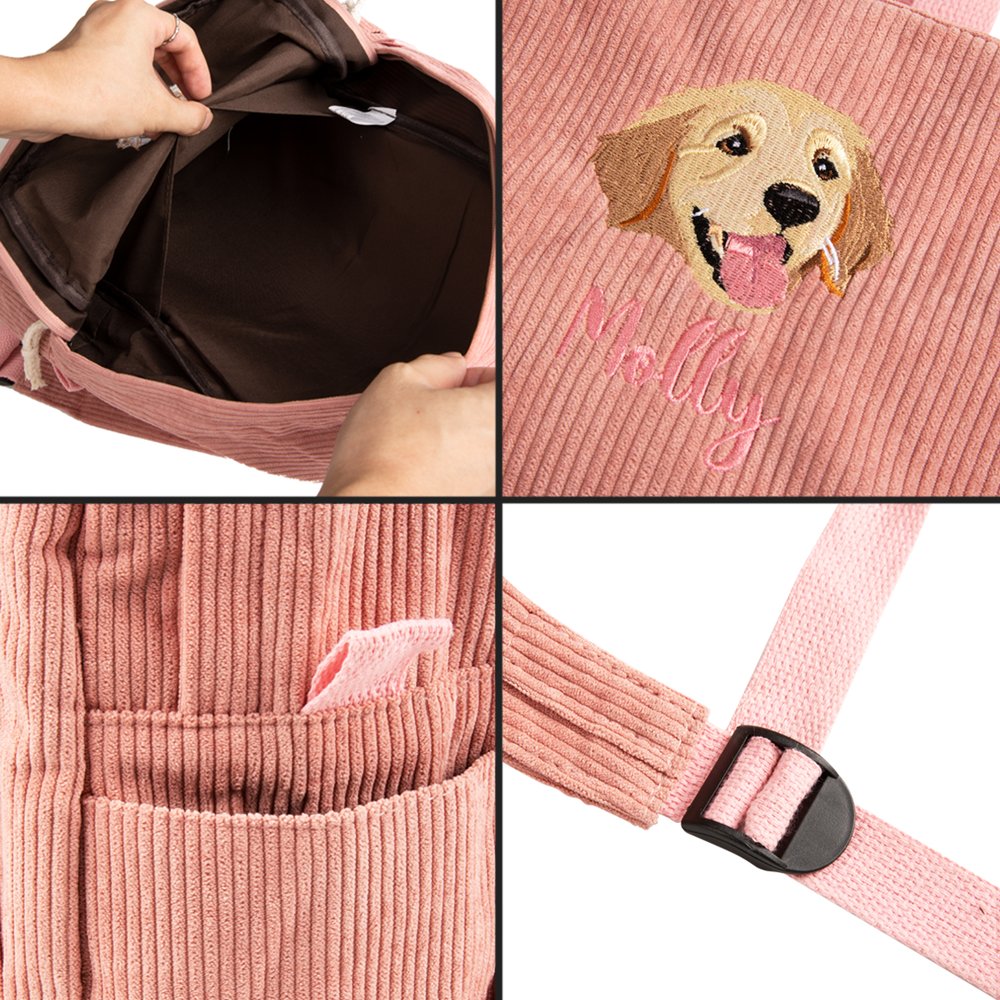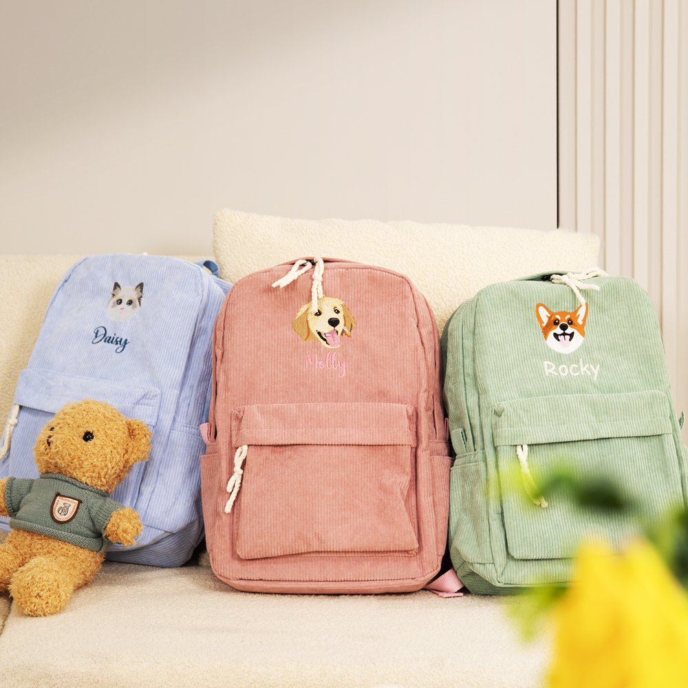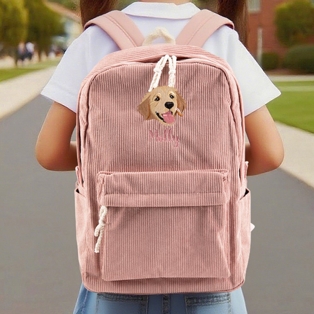 This backpack features custom pet embroidery. A pet's photo is transformed into an exquisite embroidery pattern, vividly depicting the pet on the bag, creating the illusion of a pet always being by your child's side. The customizable name embroidery complements the pet's portrait, further enhancing the sense of exclusivity. The overall design is simple yet unique, with harmonious color combinations, perfectly suiting children's aesthetic preferences while showcasing their deep love for their pet.