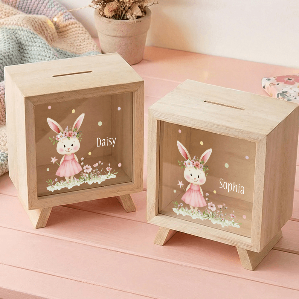 Personalised Cute Floral Bunny Money Box with Name Daily Use Easter Birthday Gift for Girls Kids
