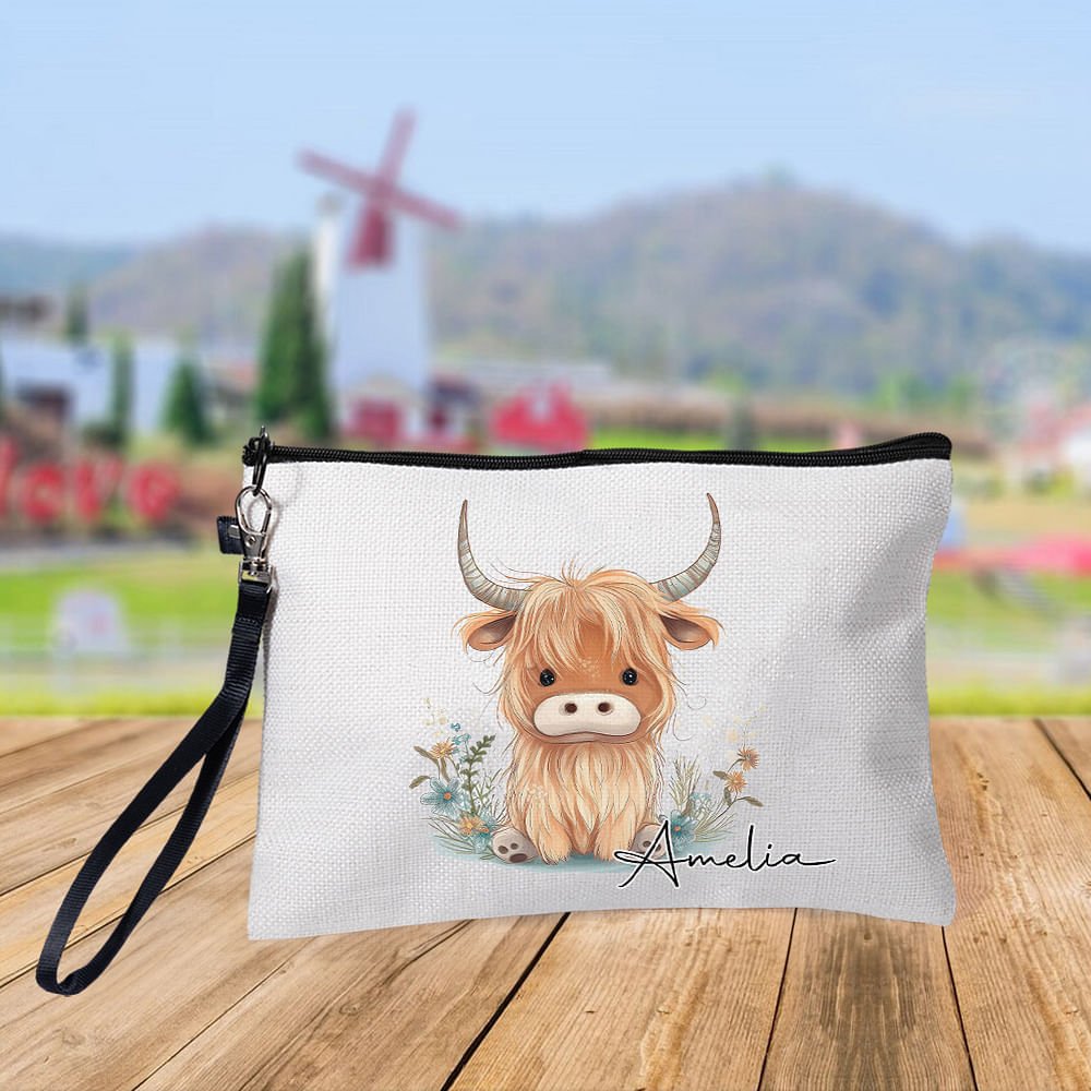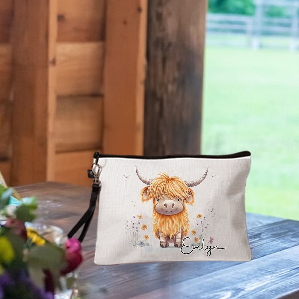 This stylish wristlet makeup bag features 9 kinds of charming Highland cow designs. You can also customize the name on the bag to make it truly unique and special, perfect for any Highland cow lover.