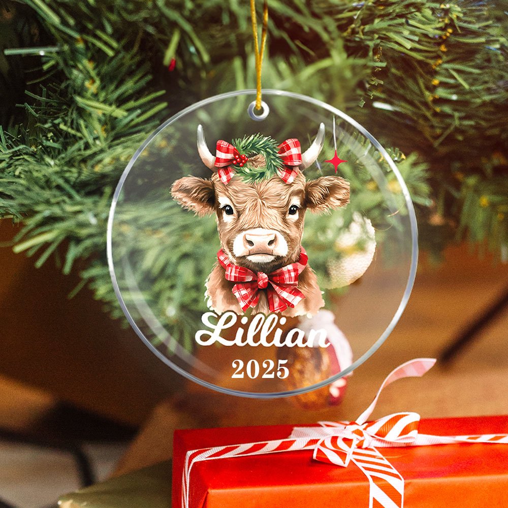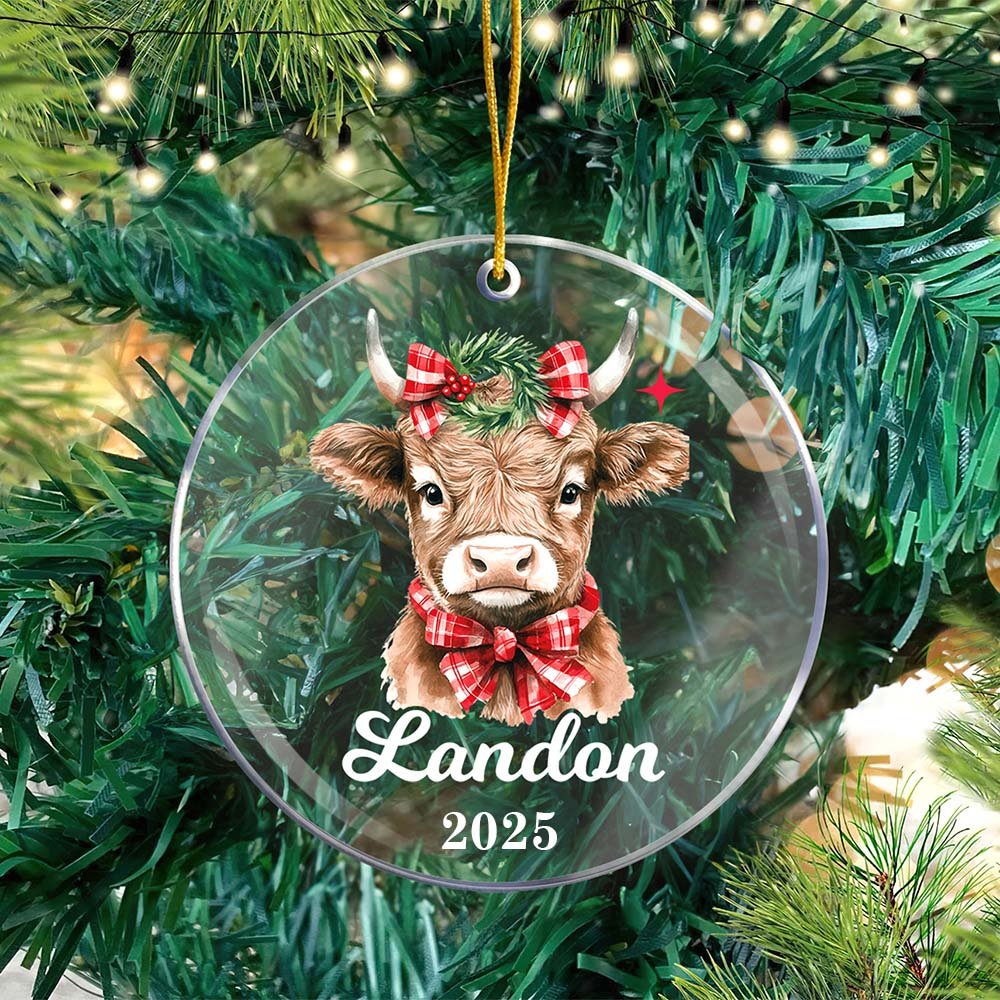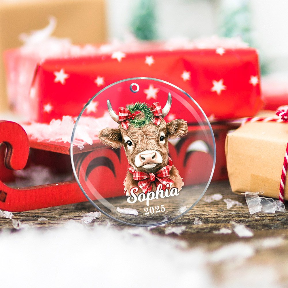 Picture a charming highland cow adorned with a cute holly wreath and a plaid bow. It's a design that immediately catches the eye and brings a touch of rustic charm and festive cheer. Whether for a child, a family member, or a highland cow lover, this ornament will become a cherished part of their Christmas decorations for years.