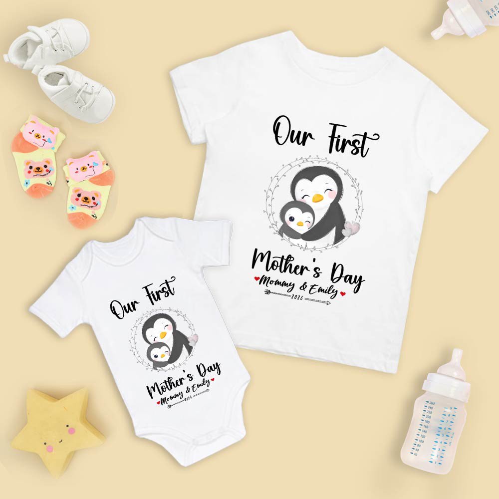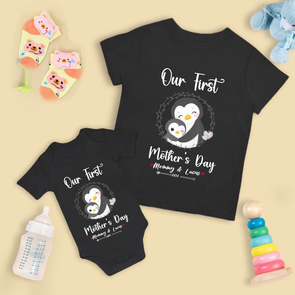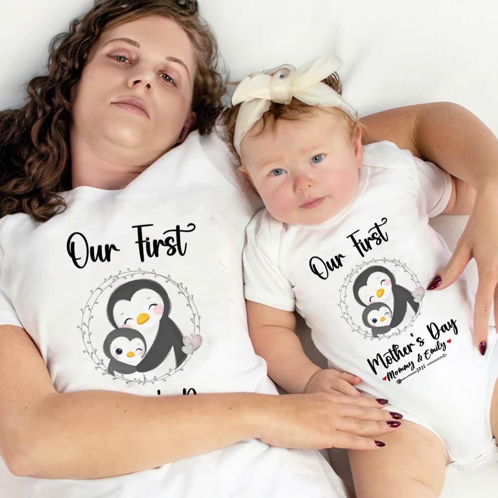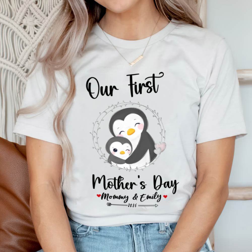 Our garments are designed with a cute parent-child penguin as the design element, the baby penguin is snuggled in the mother's arms, warm and cozy, as a way to express the love between mother and child. The highlight quote "Our First Mother's Day", makes the festive atmosphere more strong and warm.