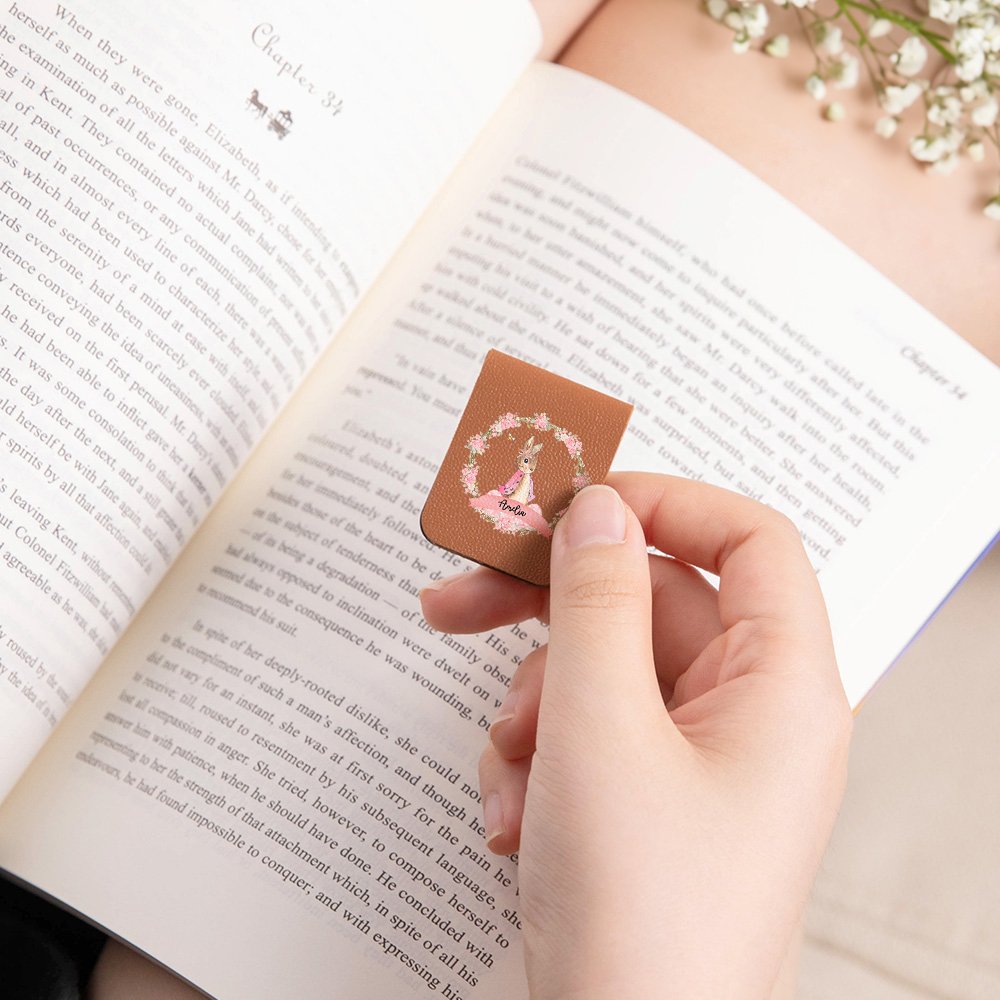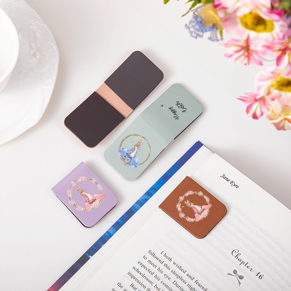 This bookmark features a lovely Peter Rabbit pattern with a beautiful wreath, available in 13 colors, creating a joyful and beautiful holiday atmosphere. "Happy Easter" and a little bee are printed on the back, and you can also customize your name on the bookmark to make it more memorable.