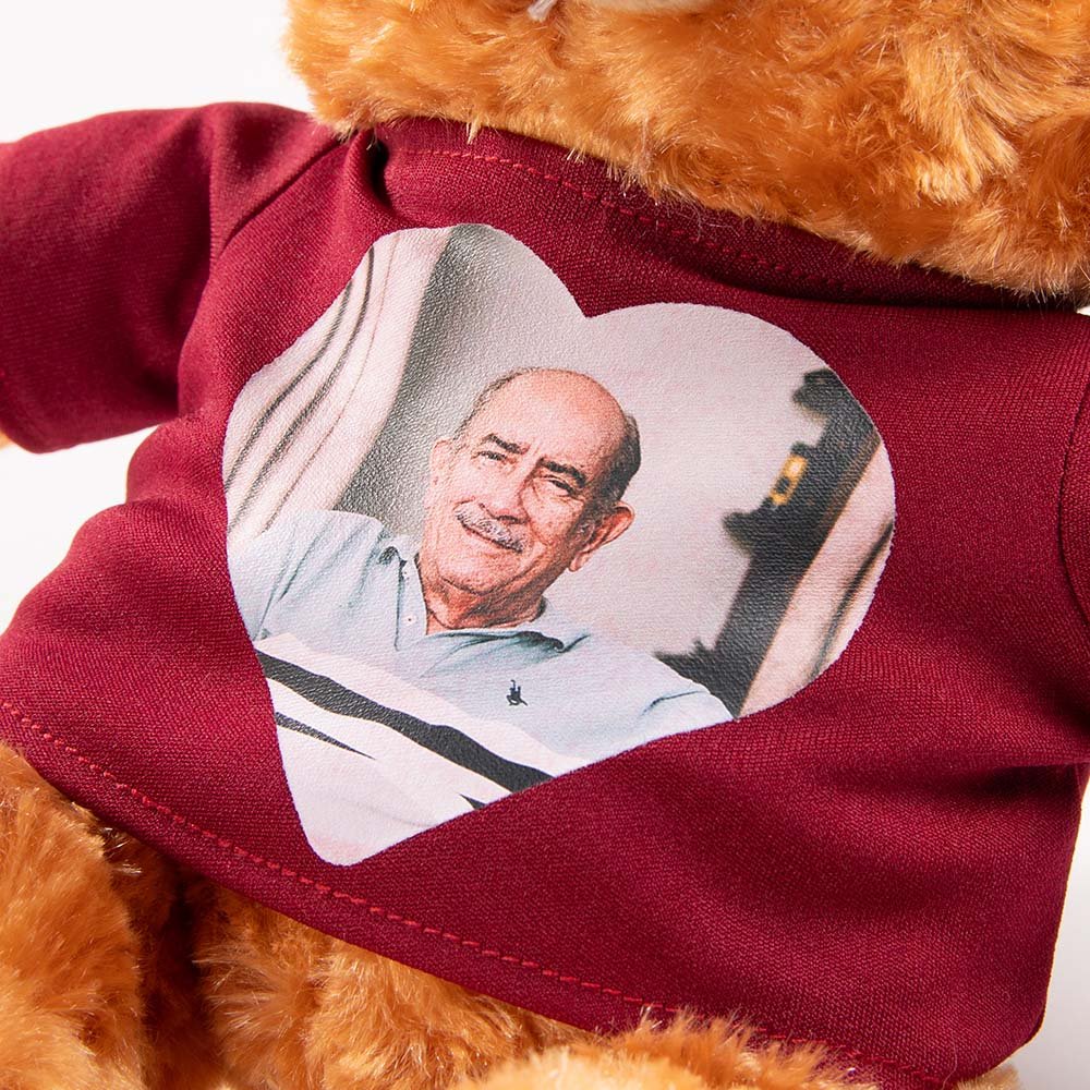 This adorable plush memory bear is designed to hold a cherished photo on its chest, making it a unique and heartfelt way to preserve meaningful moments.