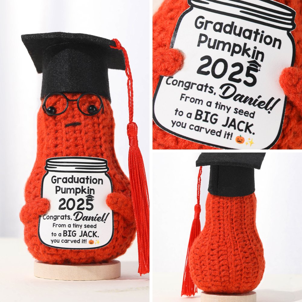 This adorable doll is available in three anthropomorphic shapes: pumpkin, potato, or avocado. Each doll is emblazoned with the corresponding message, "From a tiny seed to...", expressing blessings and hope. Paired with a mini tasseled graduation cap, it's playful yet heartwarming. Add your name and year, making each doll a unique keepsake for you or your loved ones.