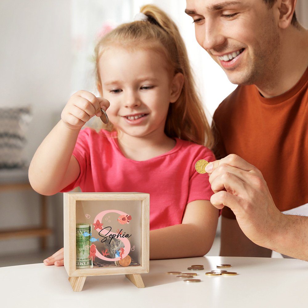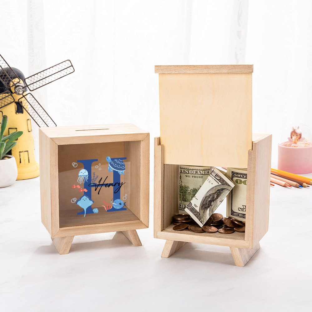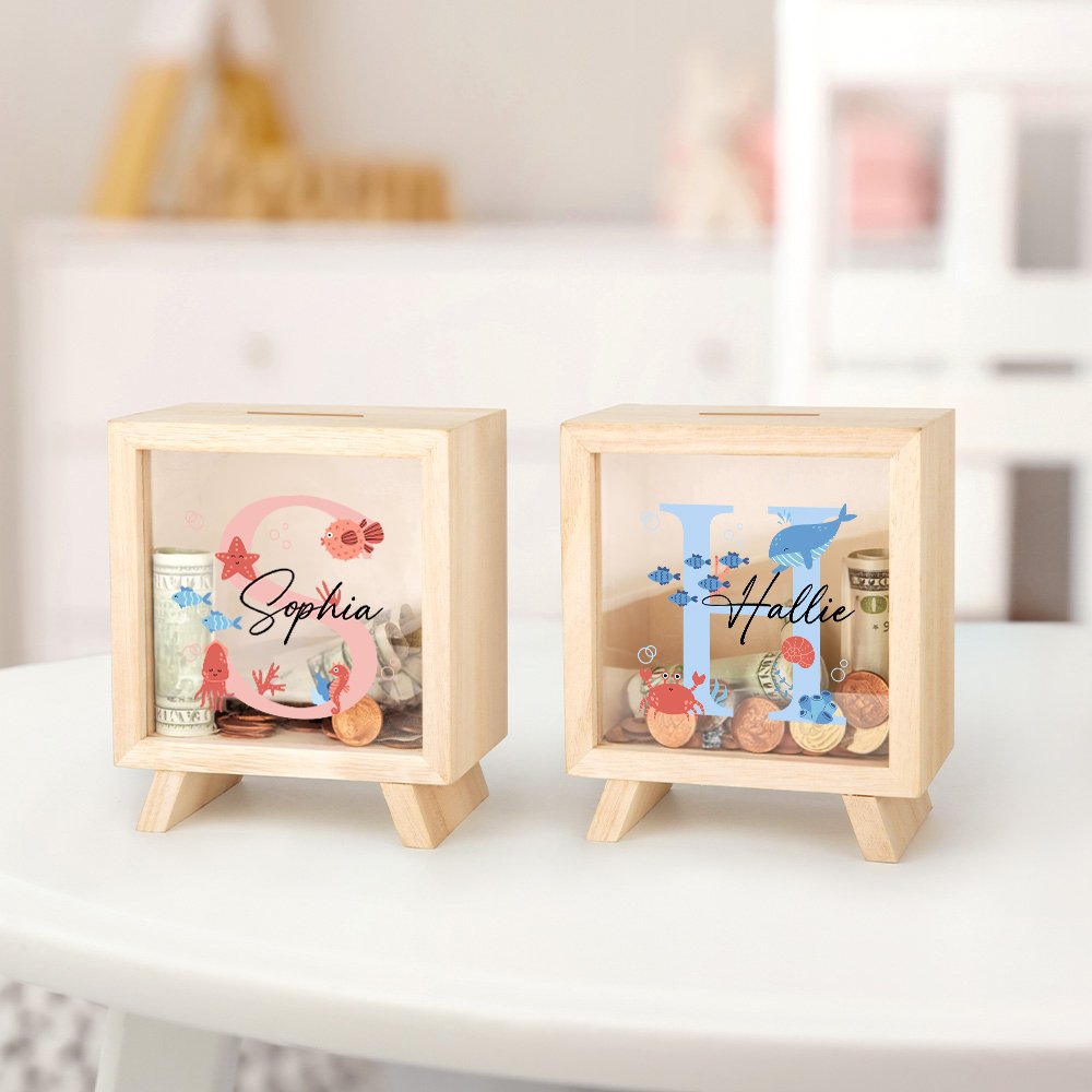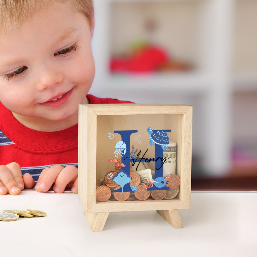 This money box features adorable and playful whale, sea turtle, and pufferfish designs that kids will adore. It can be Personalised with your child's name and initial, making it a truly special and one-of-a-kind item.