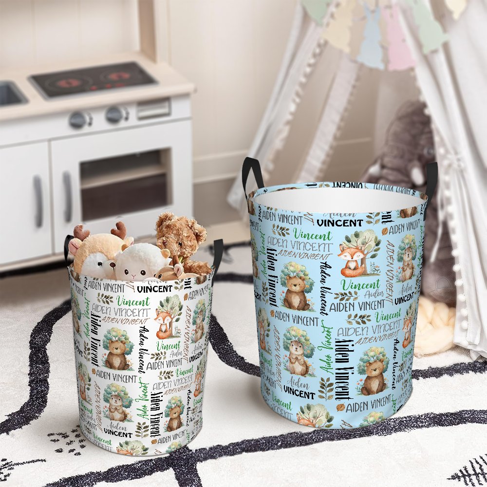 Perfect for animal lovers, this storage basket features a charming design that showcases adorable woodland animals. Lively illustrations of bears, squirrels, foxes, and more are scattered throughout the storage basket, making organization a delight. Plus, with the option to be Personalised with first and last names, this storage basket becomes a treasured piece that reflects your unique style!