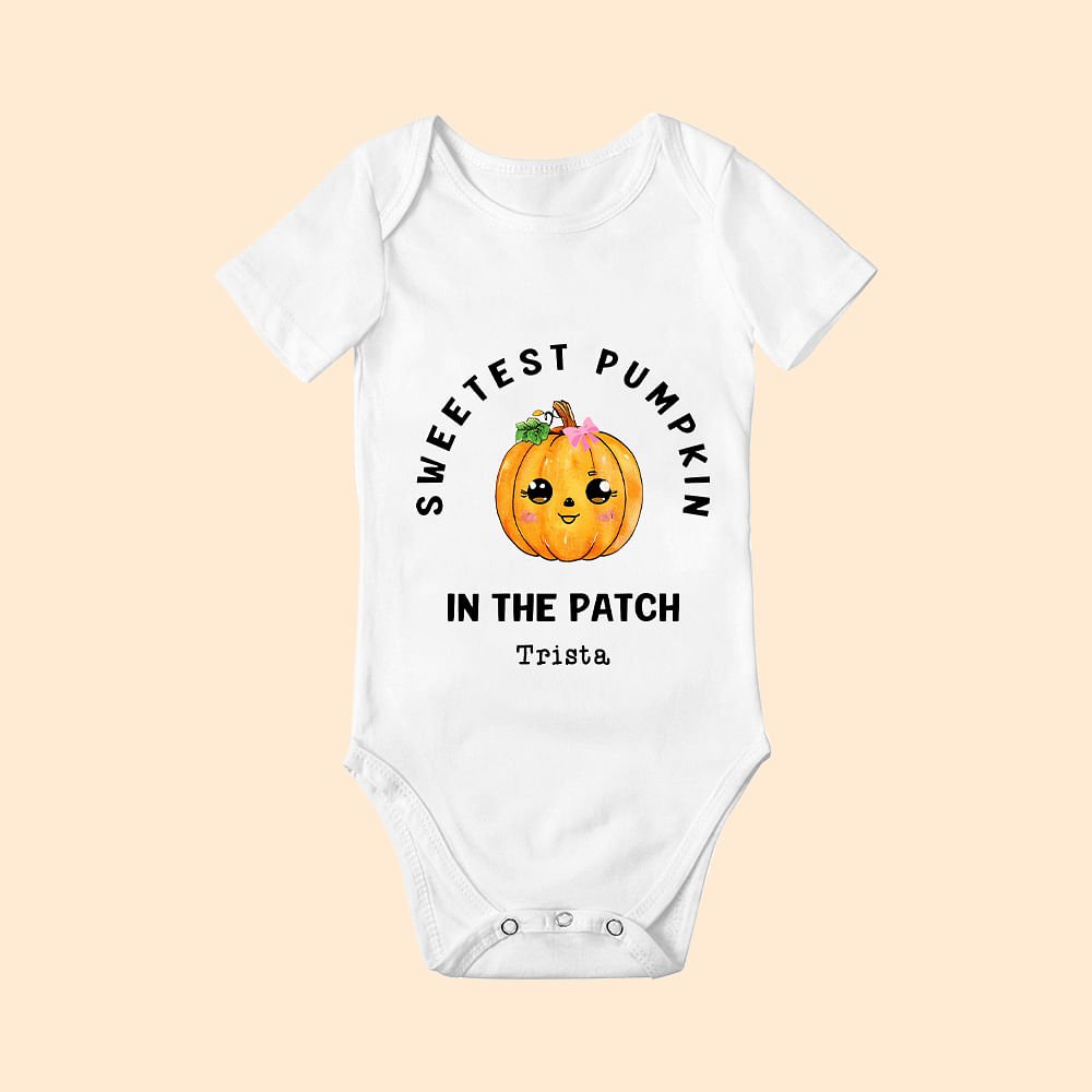 Personalised Cutest Coolest Sweetest Pumpkin In The Patch 100% Cotton Baby Bodysuit with Name Baby Shower Halloween Gift for Newborns