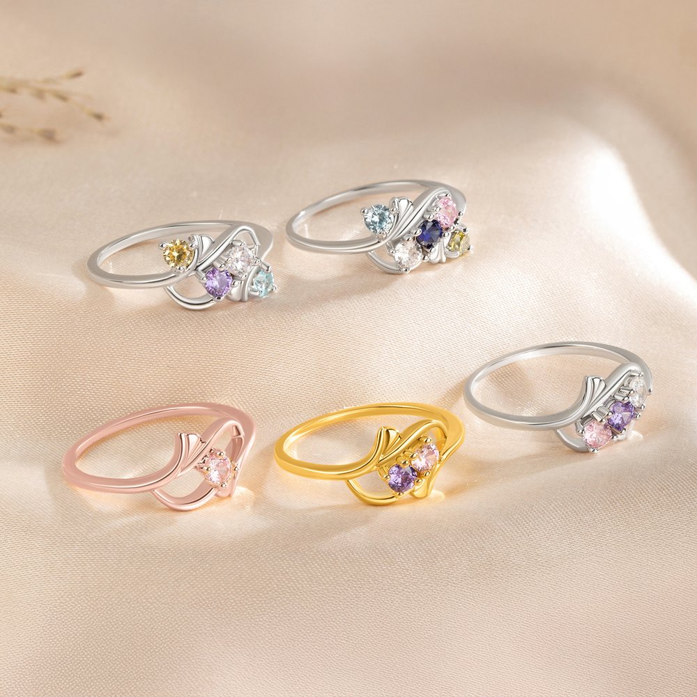 Our exquisite rings are designed with dazzling birthstones. You can customize 1-5 corresponding birthstones according to the birthday month of family members to represent different symbolic meanings, such as January garnet symbolizes sincerity, and February amethyst represents honesty and peace. This is not just a piece of jewellery, but also a symbol of emotion, representing the deep love and connection between family members.
