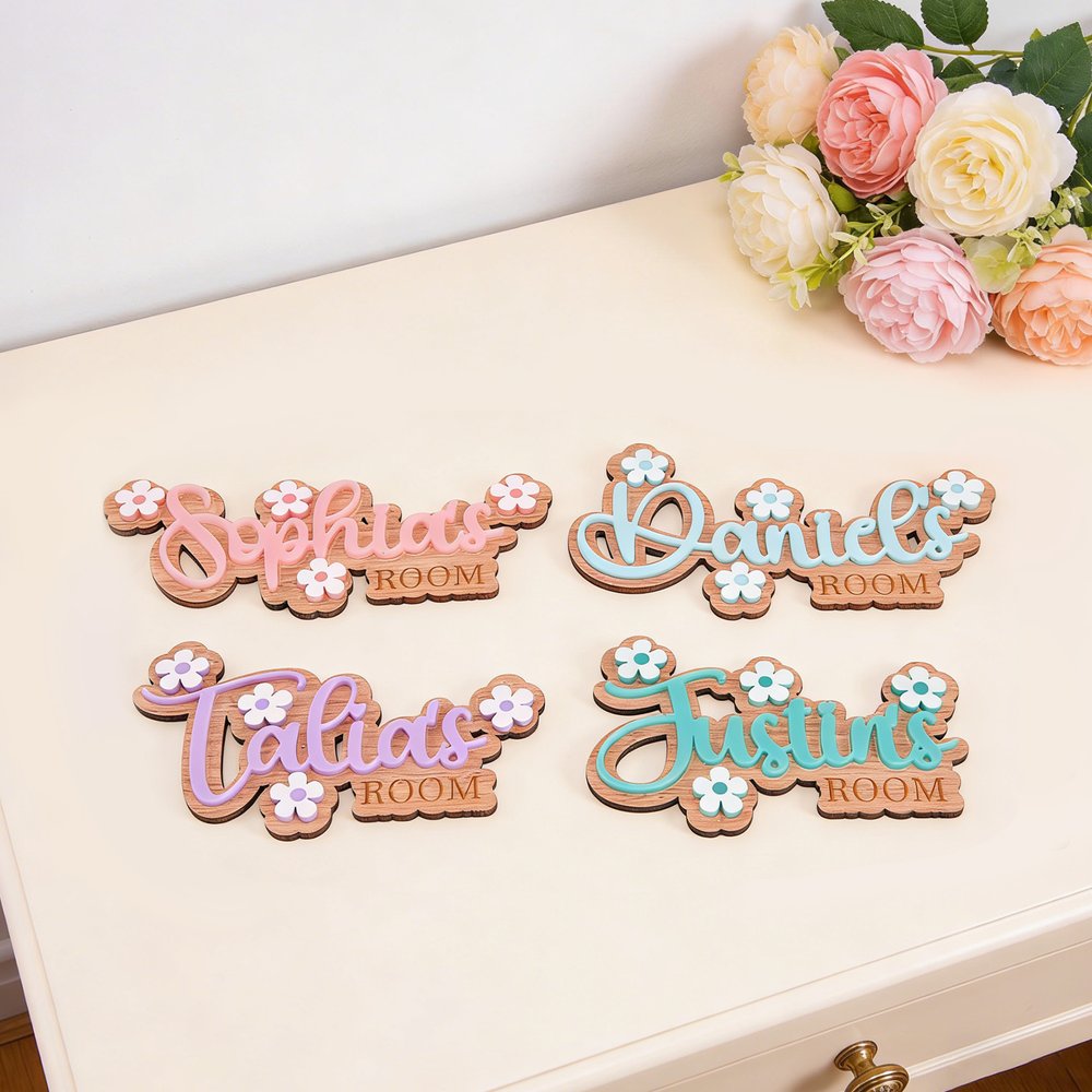 Made from 3mm premium basswood veneer with a natural, warm wood grain—sturdy and resistant to warping. The acrylic name layer is smooth-edged and securely attached to the wood base. Daisy details are finely crafted with bright, long-lasting colors that won't fade with wiping. High-quality craftsmanship ensures durability and your child's growth, while preserving precious family memories.
