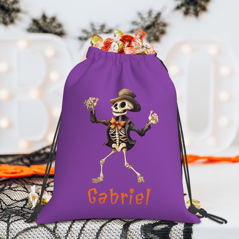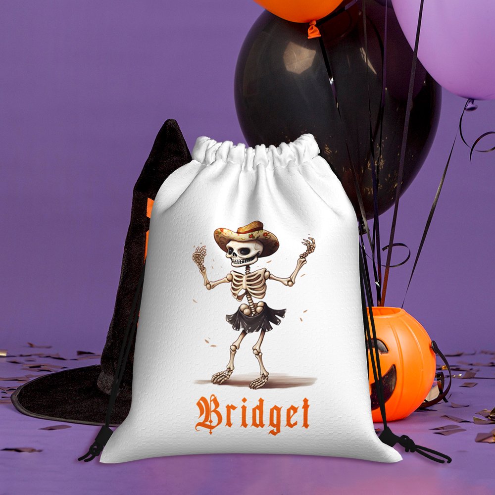 Personalised Dancing Skeleton Drawstring Backpack Halloween Snack Bag for Kids Trick or Treat Party Favors