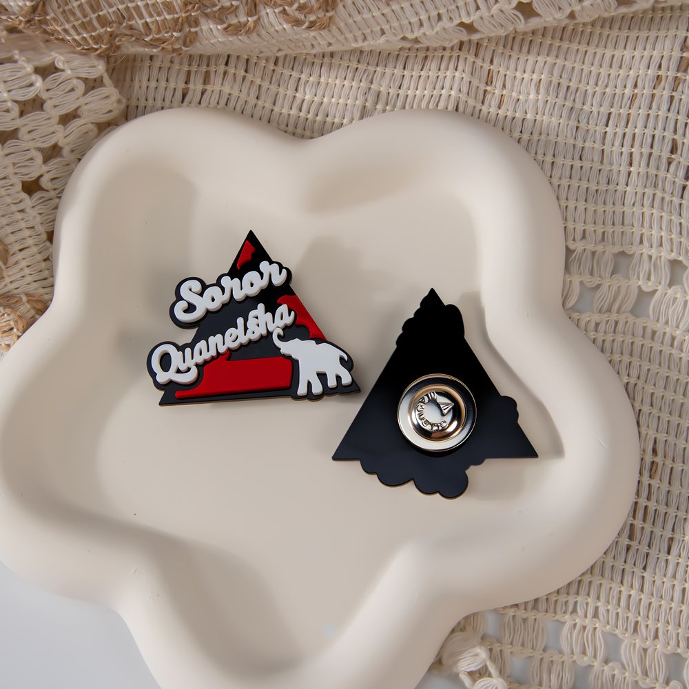 This customizable name pin features an elephant motif and Greek letters, creating a unique visual identity while also conveying the sorority's signature. Customizable with your own name, "Soror" perfectly captures your identity, adding a personal touch to any outfit or accessory, making you stand out from the crowd.