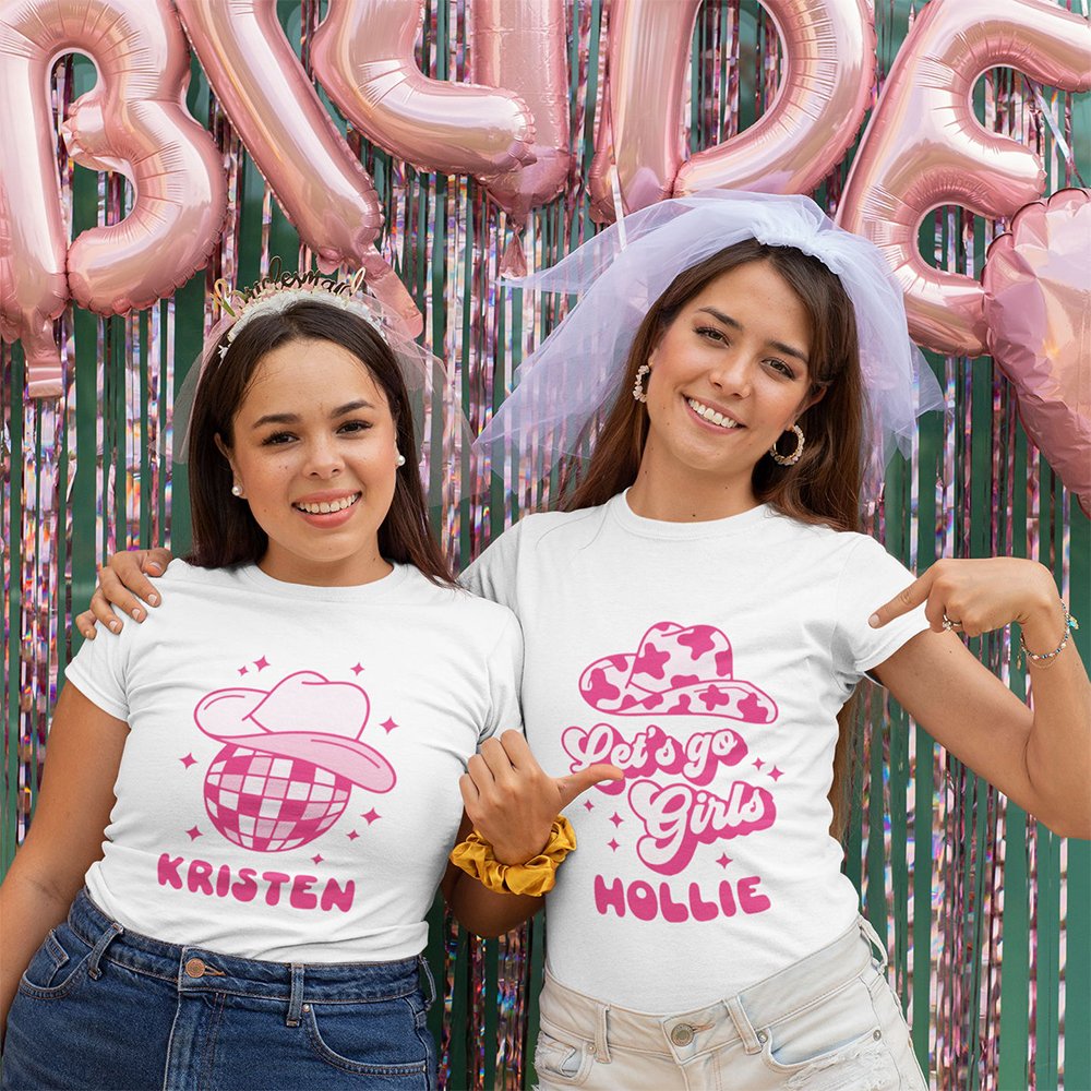 Get ready to party the night away with our Personalised Disco Style T-Shirt with Name, the perfect gift for a bachelorette party! Whether you're hitting the dance floor or enjoying a night out on the town, this fun and stylish t-shirt will make sure all eyes are on you bridal party.