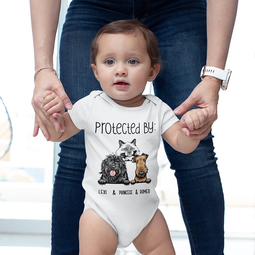 This baby onesie showcases adorable dog and cat breeds in its pattern, adding a touch of cuteness and uniqueness. It's a great gift option for families who have pets and want to share their love for animals with their little ones.