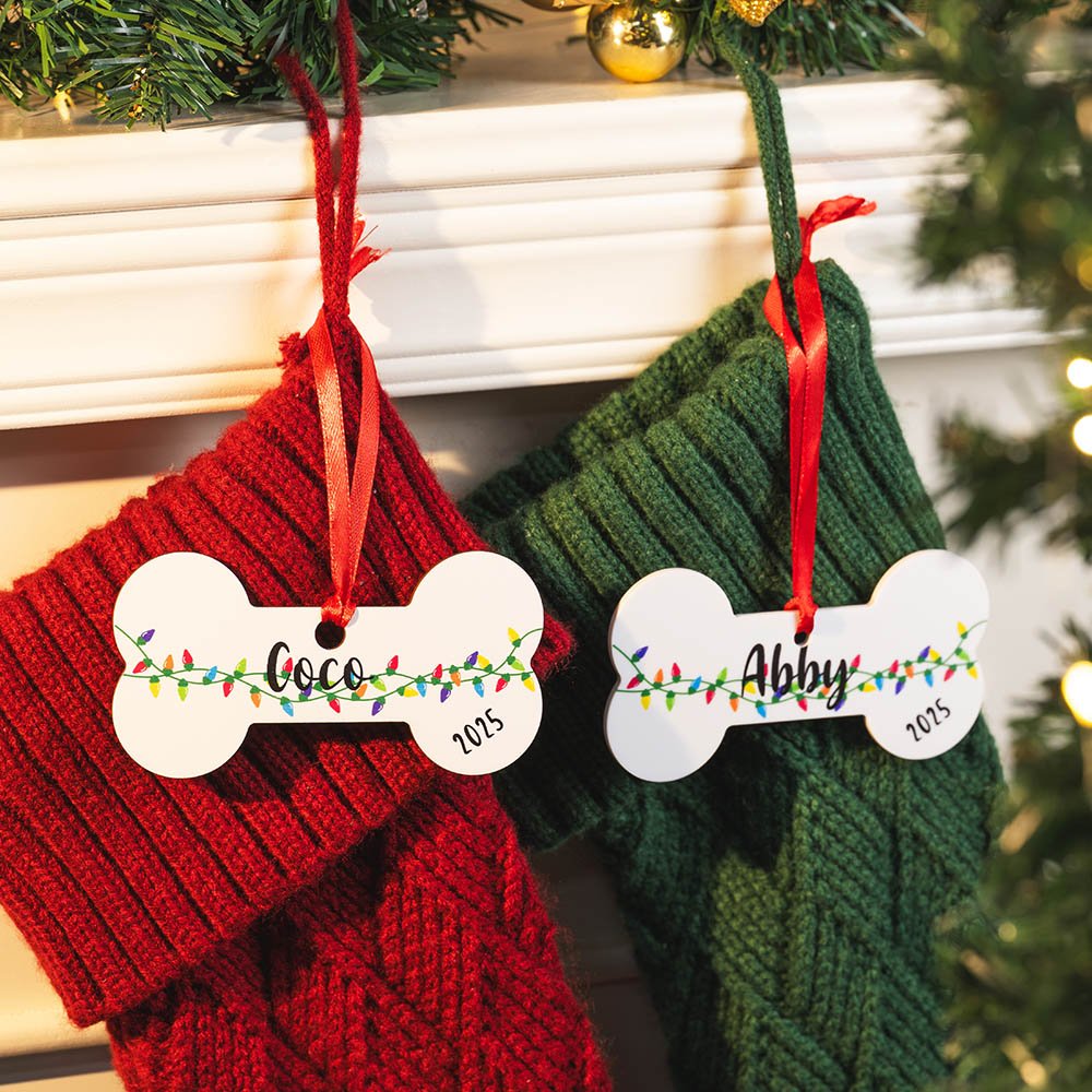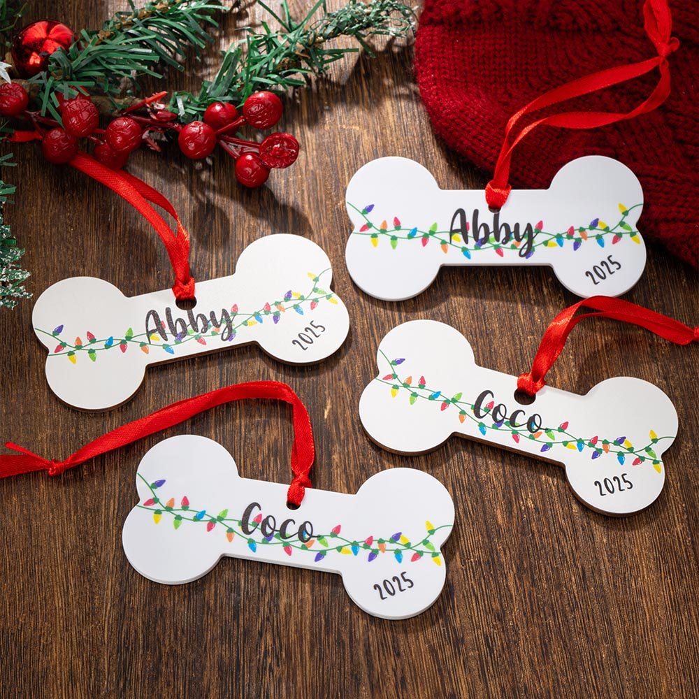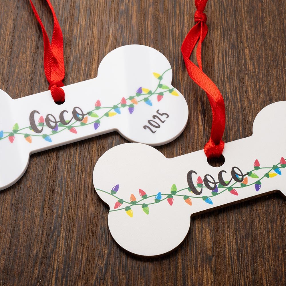 This ornament showcases a cute dog bone adorned with a vibrant light design, customizable with your chosen text and date. Its exquisite craftsmanship beautifully captures the essence of a dog bone, making it a heartfelt gift for your furry friends.