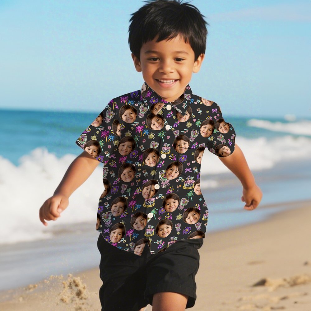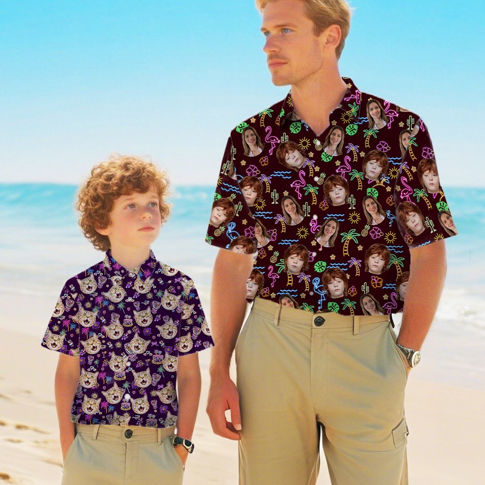 You can incorporate your pet's cute look or your Personalised photos into the shirt design, and you can upload up to three photos, so that every inch of the shirt is imprinted with exclusive memories. At the same time, we have carefully prepared three tropical patterns for you to choose from, combining bright colors with classic Hawaiian elements, and matching them with twelve retro background colors of different styles.
