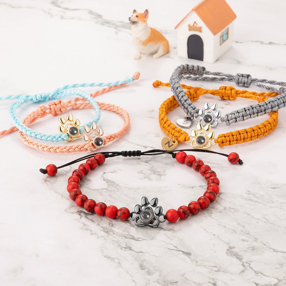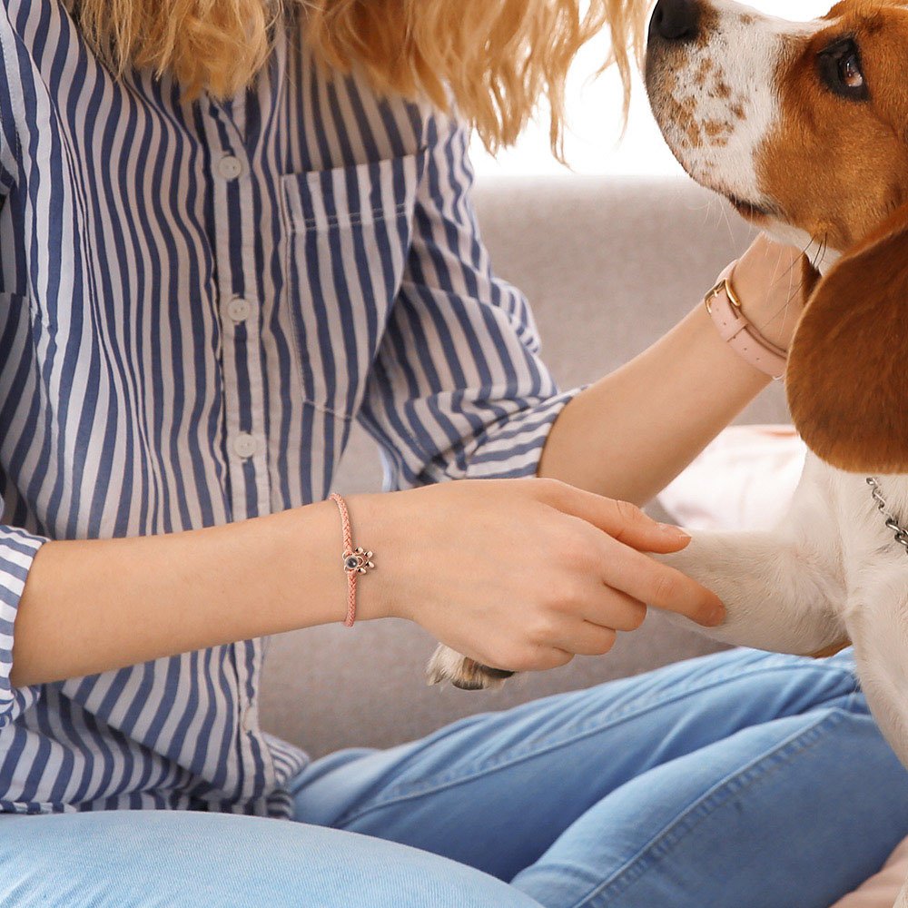 This unique bracelet features a dog paw print element, symbolizing the love and bond shared with your furry friend. The Personalised photo projection adds an emotional touch, creating a beautiful tribute to a pet who has passed away, making it a meaningful keepsake.