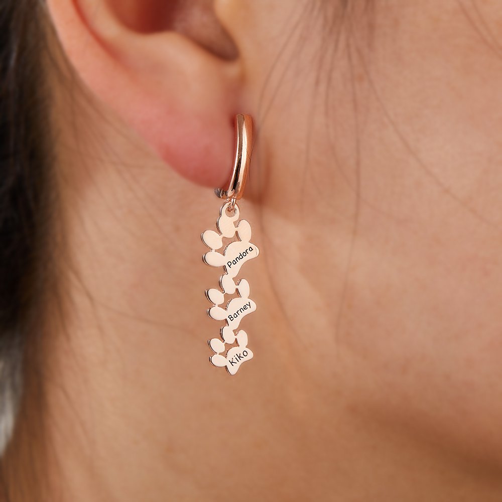 These earrings are a fashion statement and symbolize the deep emotional connection between pet owners and their beloved companions. Each paw print represents cherished memories, shared laughter, and unwavering loyalty. Wearing these earrings is a tribute to the beautiful journey of being a pet parent and a way to keep your pet's love and joy close to your heart.
