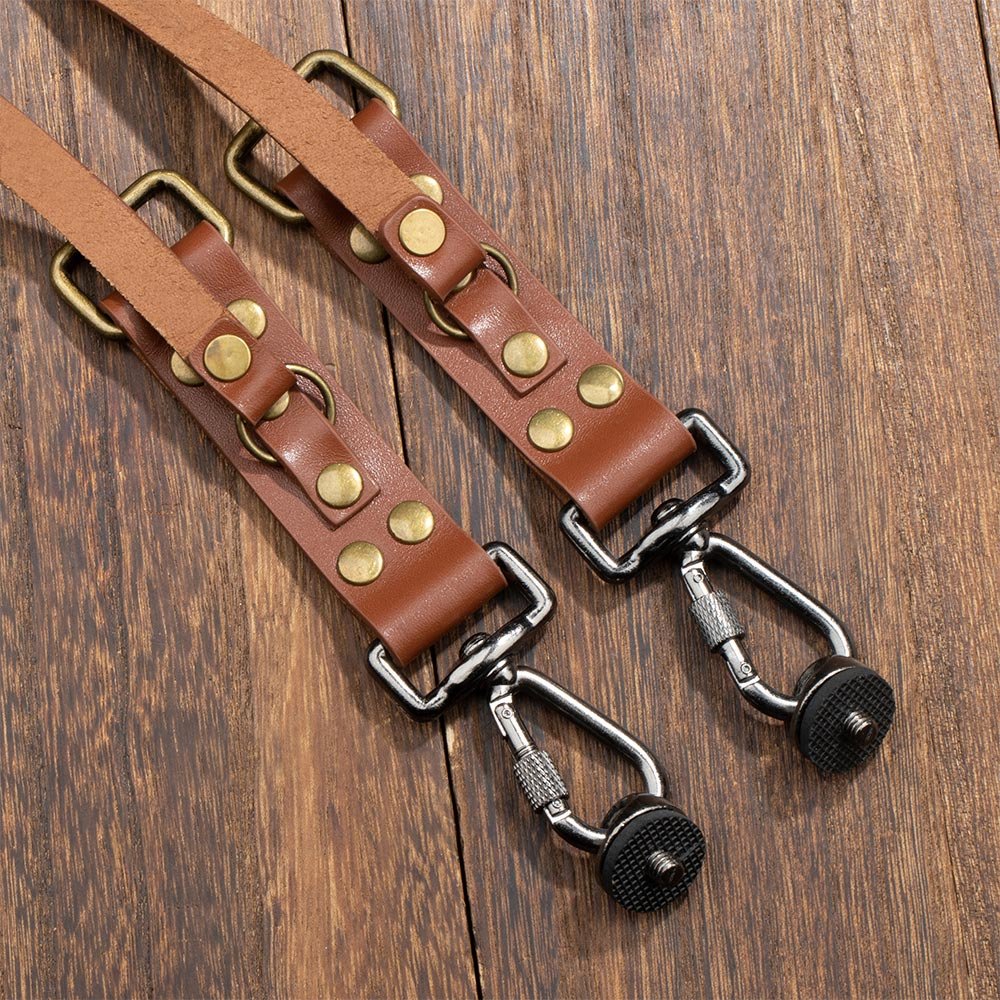Two cameras are used at the same time, which provides convenience for the photographer. You can quickly switch when taking follow-up shots. The leather material of the strap is also more stylish. You can customize the desired logo or text leather label. Handcrafted and uniquely designed, it's perfect for all types of photographers, weddings, studio shots, travel and wildlife, and sporting events.