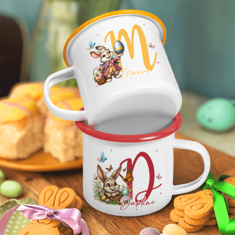 Features an adorable bunny illustration paired with a customizable name and initial, creating a cheerful Easter-themed look that feels playful, warm, and personal. The cute design makes every drink more enjoyable for both kids and adults.