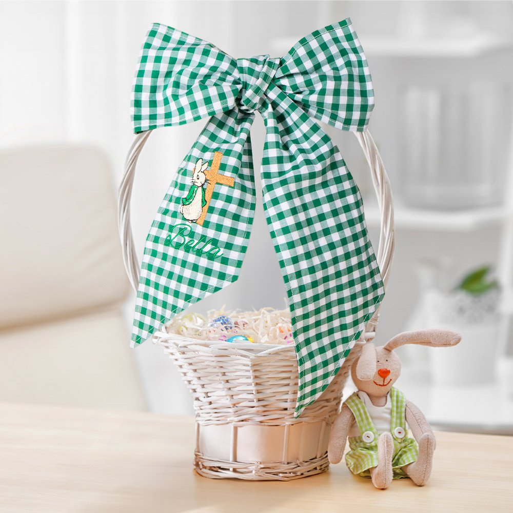 | Feature: | Embroidery Cute Bunny Design, Gingham Basket Sash |