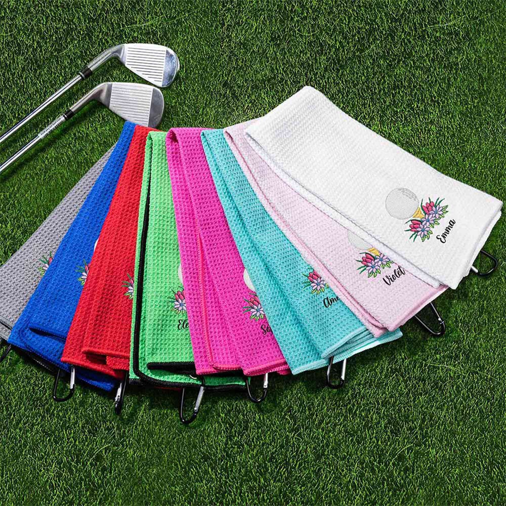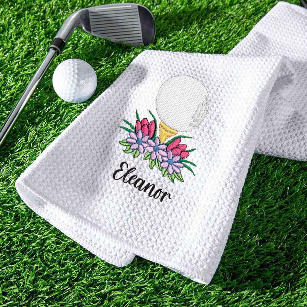 This towel combines the elements of golf balls and floral patterns through intricate embroidery, offering a unique blend of personality and style. With 8 vibrant color options and customizable names, every golf lover can find a design that suits their individuality and showcases their charm.