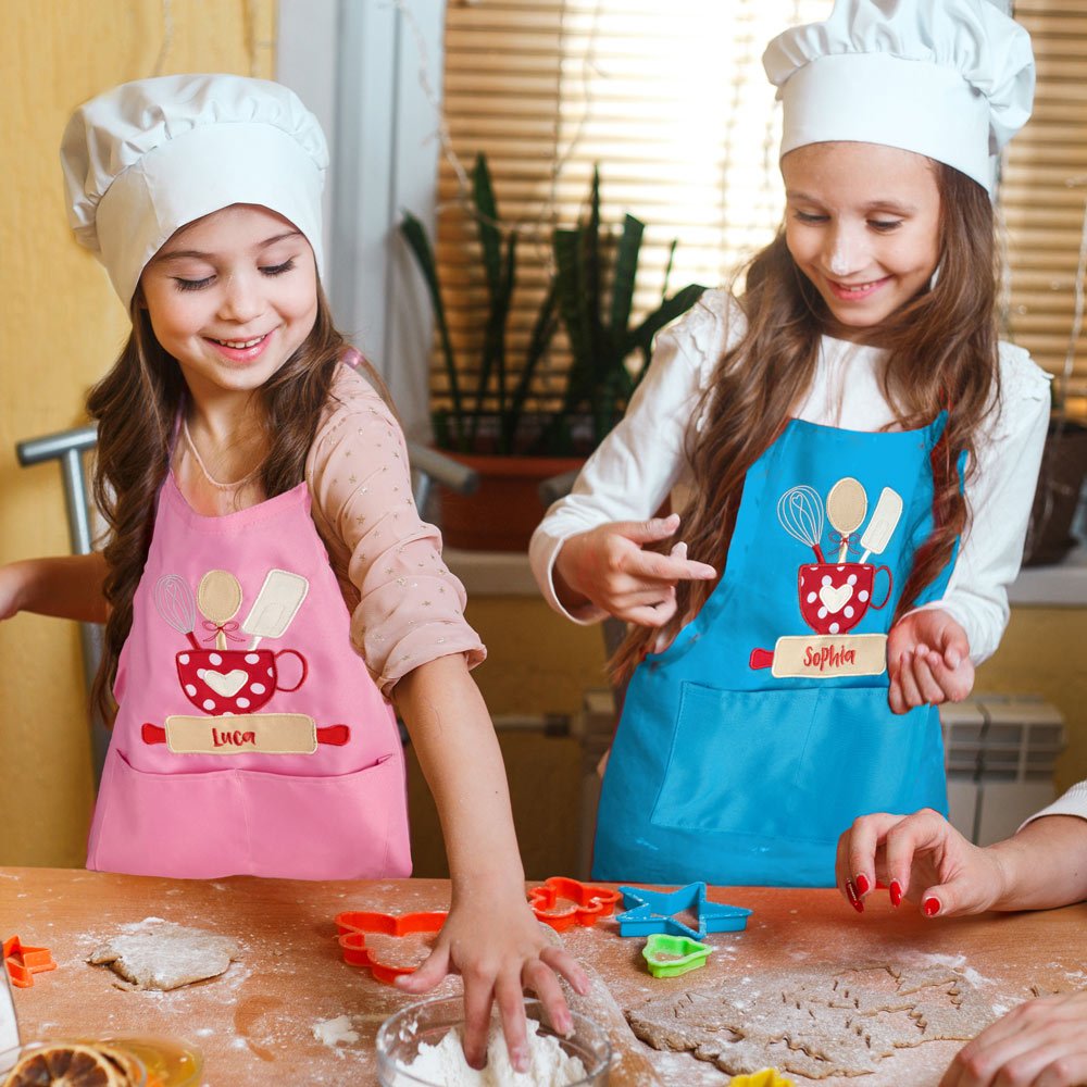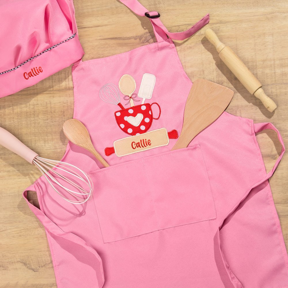 The apron and chef hat both feature Personalised embroidery with your child's name, making it a special and memorable item that they will cherish. The set also comes in a variety of colors to suit their personality and style.