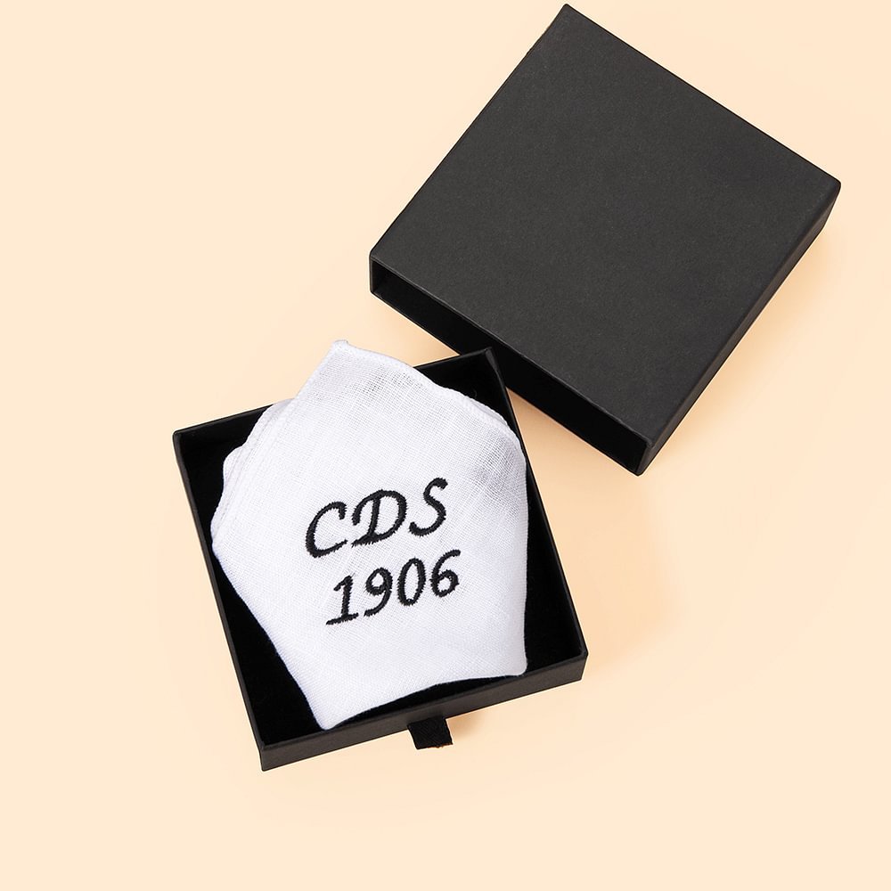 This Personalised linen handkerchief provides exquisite embroidery services in various colors. You can customize the recipient's initials and important dates so that each handkerchief carries unique emotions and blessings. In addition, this handkerchief is perfectly packaged in a box, making it perfect for gift-giving.