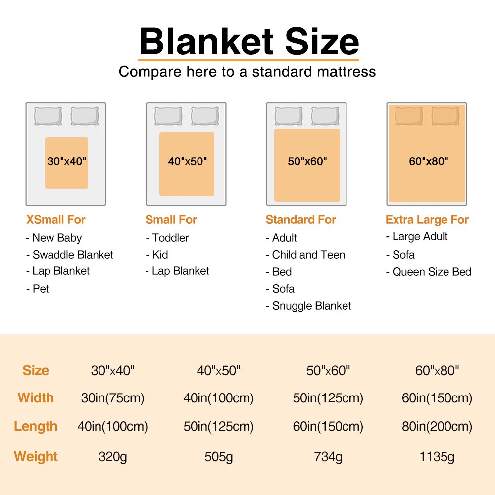 Measurement: Fleece Blanket: 30" Γ— 40"(75cm Γ— 100cm), 40" Γ— 50"(100cm Γ— 125cm), 40" Γ— 60"(100cm Γ— 150cm), 50" Γ— 60"(125cm Γ— 150cm), 60" Γ— 80"(150cm Γ— 200cm), Sherpa Blanket: 40" Γ— 50"(100cm Γ— 125cm), 50" Γ— 60"(125cm Γ— 150cm), 60" Γ— 80"(150cm Γ— 200cm)