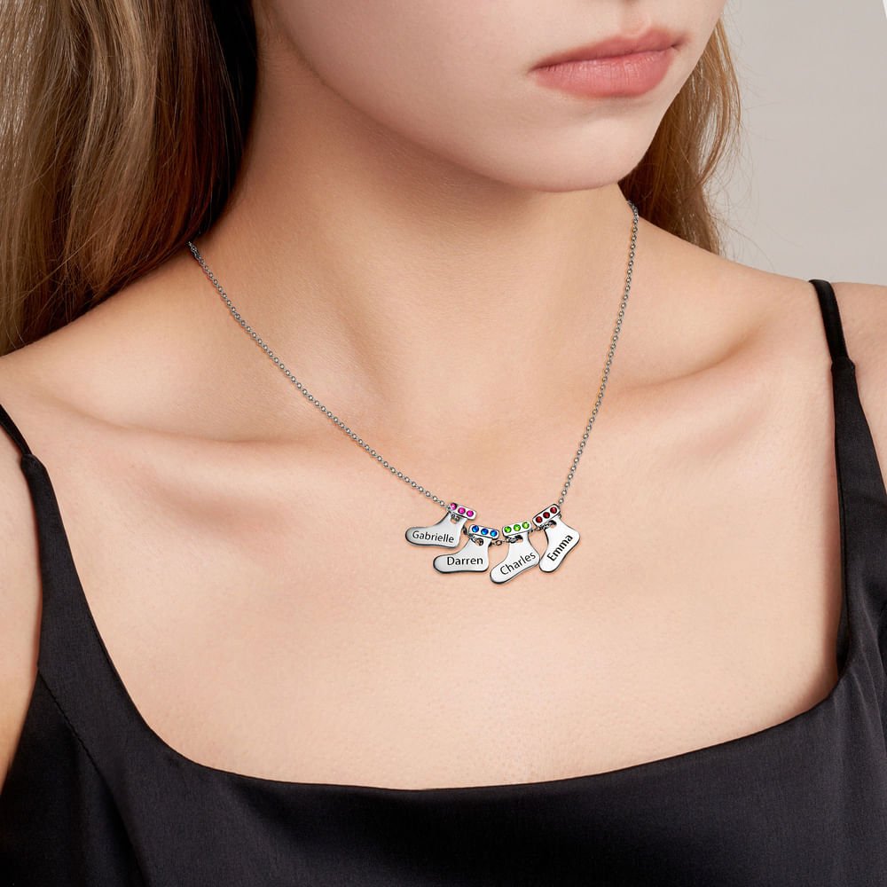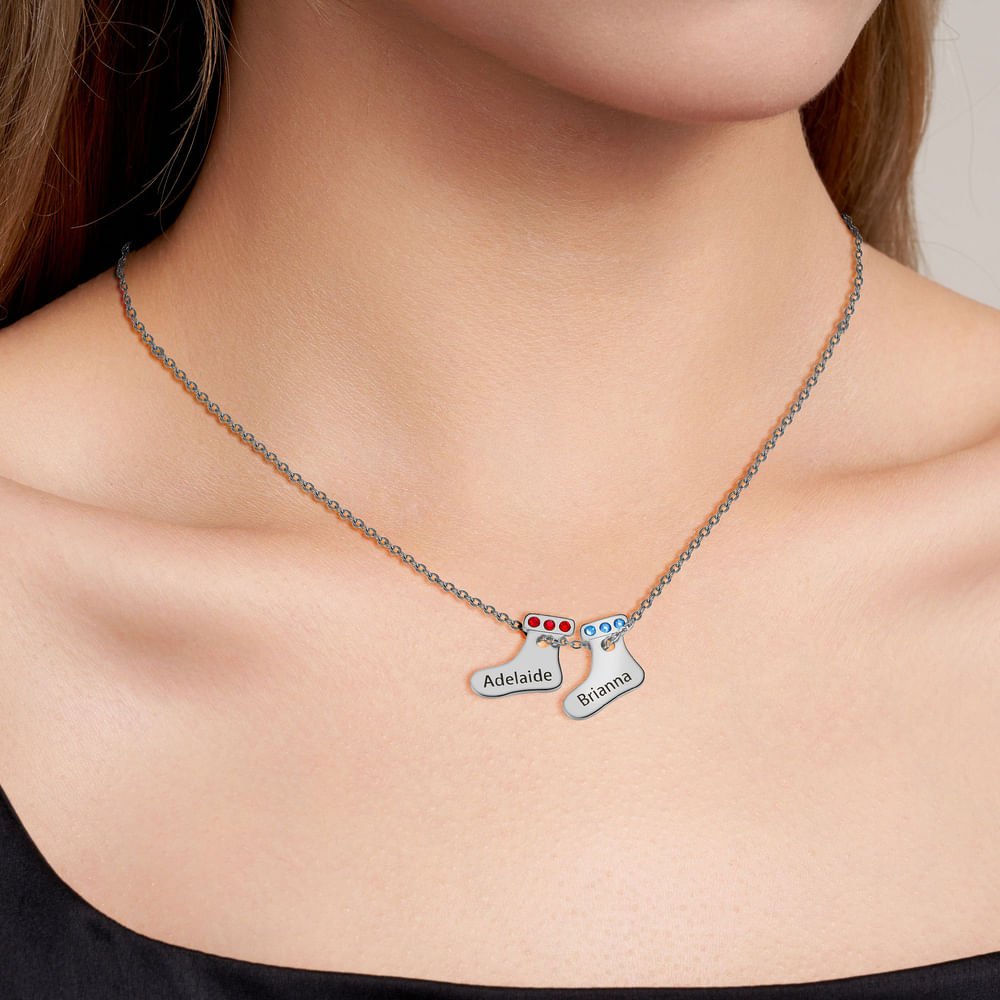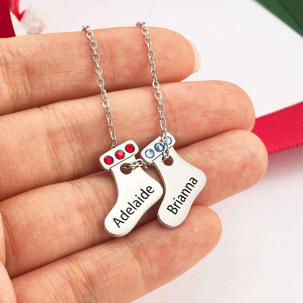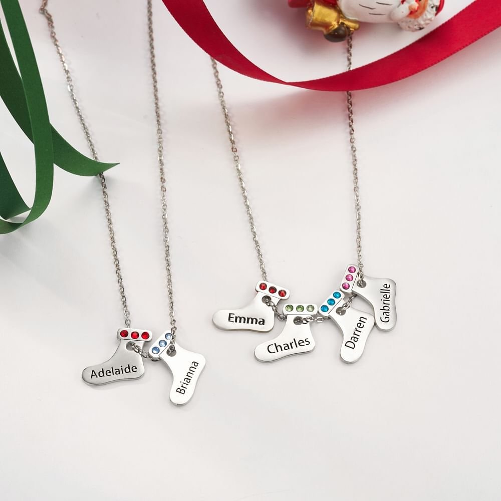 This pendant necklace comes with 1-4 Christmas stocking charms, each engraved with a name and birthstone to enhance gift-giving. Personalise your necklace to create a unique and meaningful Christmas or birthday gift.