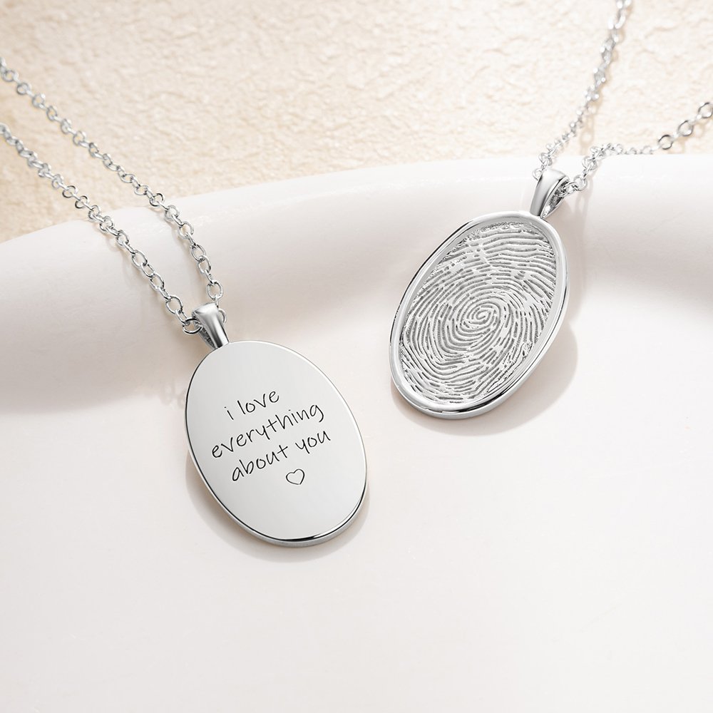 Personalised Engraved Fingerprint Oval Necklace with Text Birthday Anniversary Valentine's Day Gift for Women