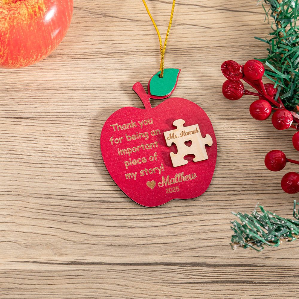This extraordinary ornament is the ultimate Teacher's Day, Back to School, or Thanksgiving gift that captures the essence of treasured memories. The Apple puzzle logo is a symbolic way to let a teacher or family member know how much you appreciate them.