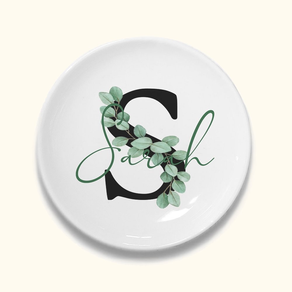 Our ring tray features a eucalyptus design with the leaves surrounding the name, giving you a sense of what sets it apart from other ring trays.Eucalyptus leaves represent purity, protection and everlasting love, and are a popular choice for wedding decorations and bridesmaids' bouquets.