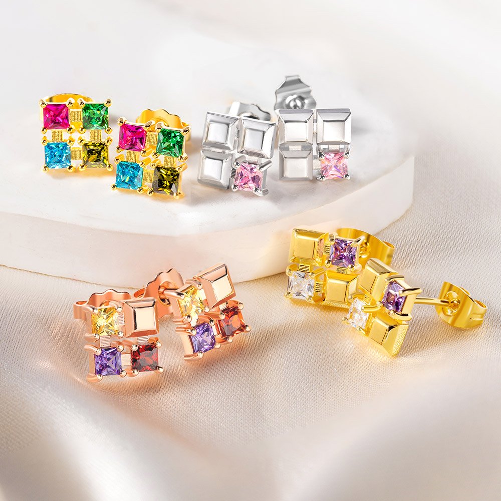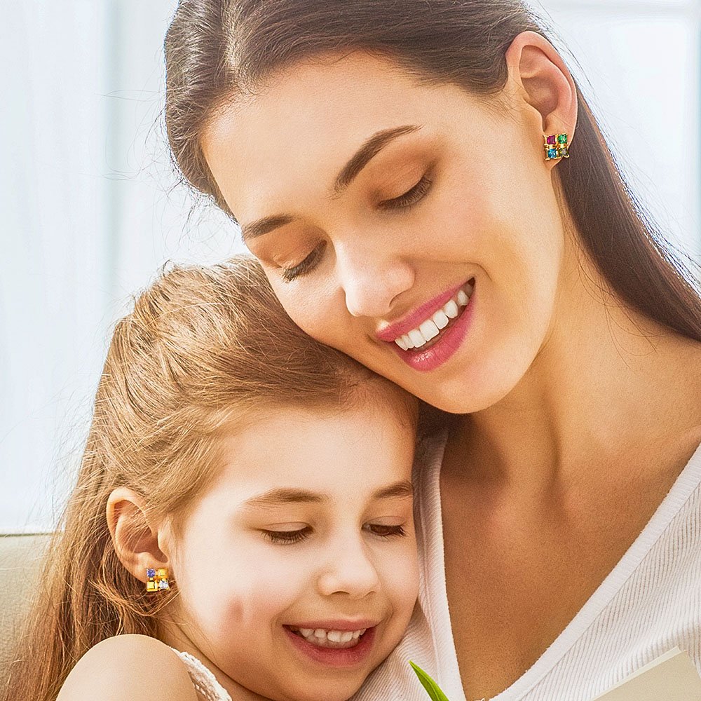 These earrings have a square design and are inlaid with 1-4 birthstones, which is very unique and fashionable. You can choose the color of your birthstone according to your birth month, making this earring a unique personal identity.