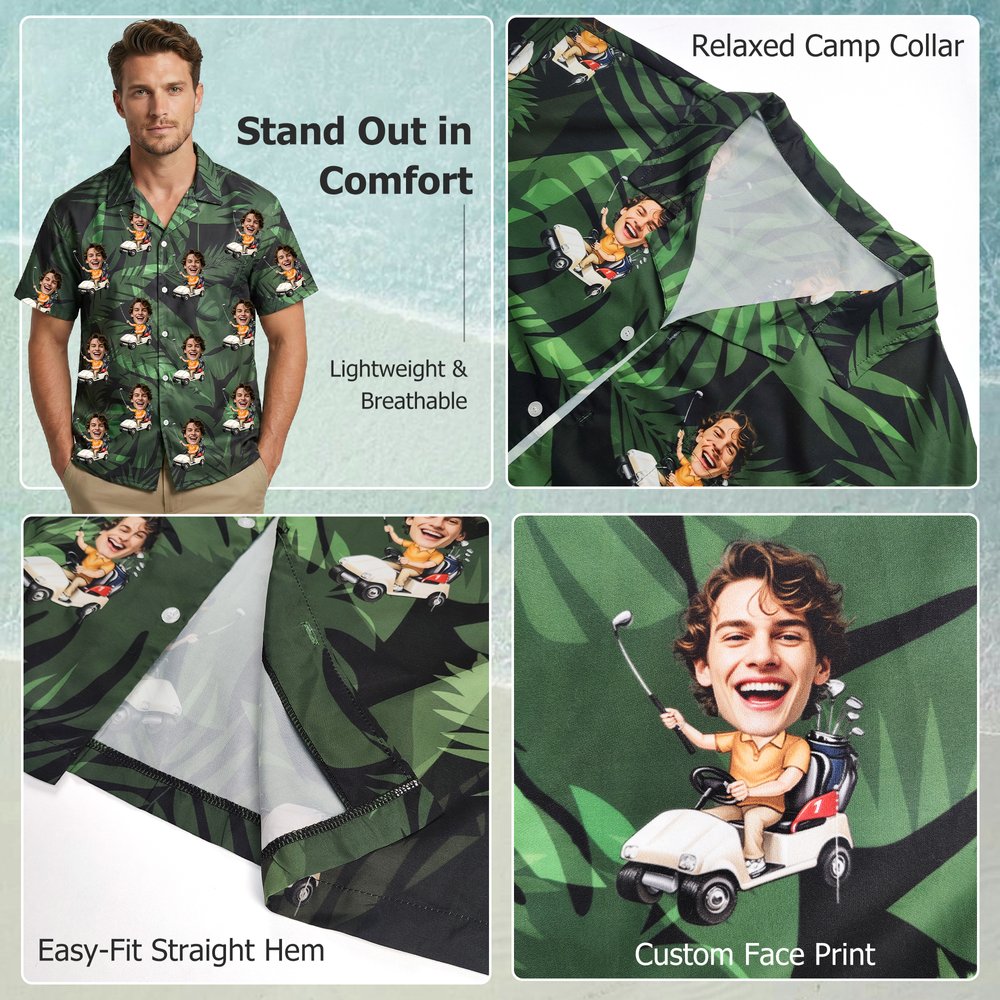 This golf short-sleeved shirt features a custom avatar design and is available in a variety of Hawaiian colors, perfectly blending your personal golf imprint with Hawaiian style. The rich color selection not only shows the relaxation and vitality of the tropical style, but also makes each short-sleeved shirt full of personality. The clever combination of cartoon images and photos is both humorous and cute, adding a touch of fun and uniqueness to your outfit.