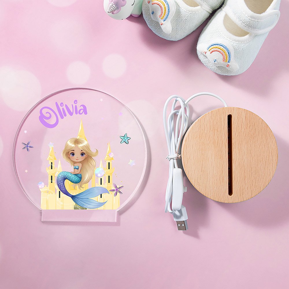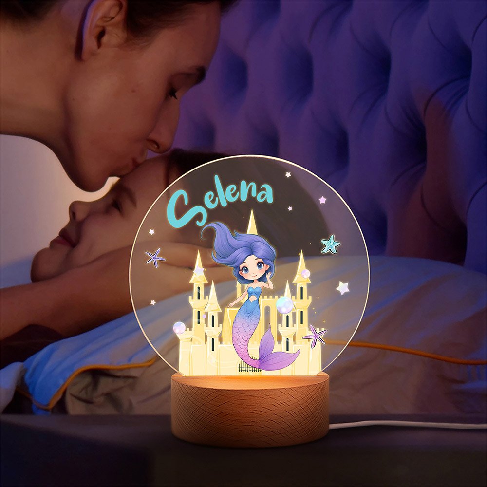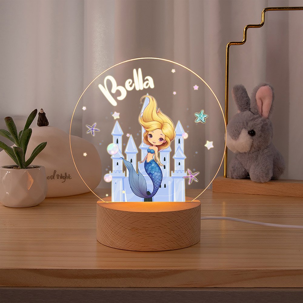 | Feature: | Non-fading, LED Night Light, Name Customization, Fantasy Mermaid Princess Design |