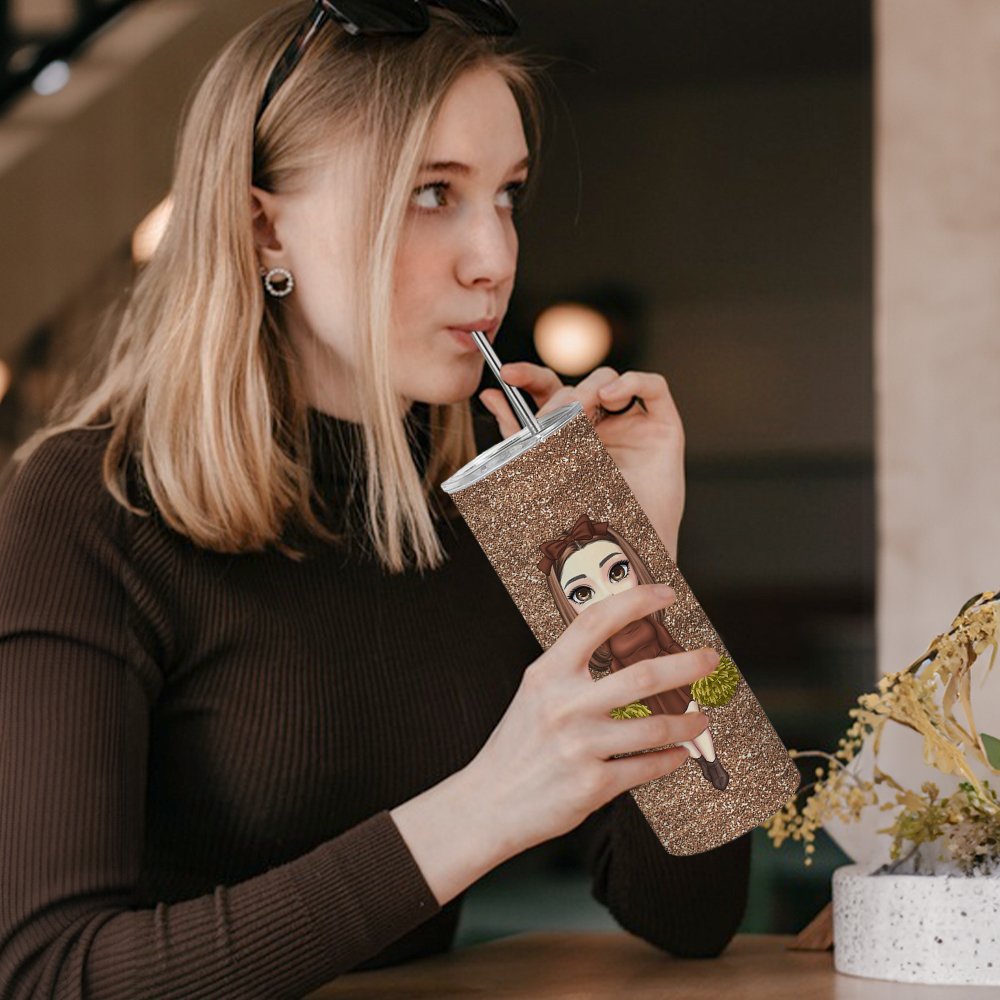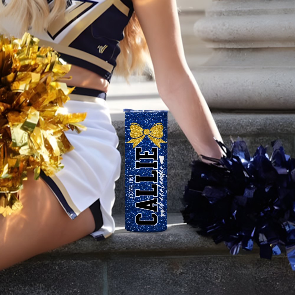 This 20 oz skinny tumbler is specifically designed for cheerleaders, with a Personalised cartoon cheerleader graphic and the option to add a name. The vibrant, faux glitter design makes it an eye-catching and fun accessory that showcases a cheerleader’s personality and spirit, while providing a meaningful and supportive gift.