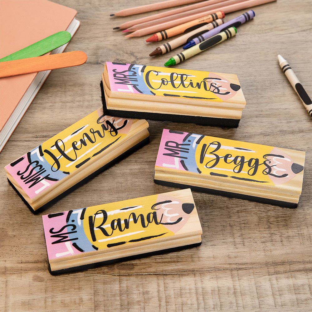 Give this chalkboard Rubber a special meaning by customizing it with the teacher's title and name. You can give it as a gift to your child's teacher on every special day, such as Christmas, Teacher's Day, the first day of school, etc., to show your appreciation and concern for him/her.