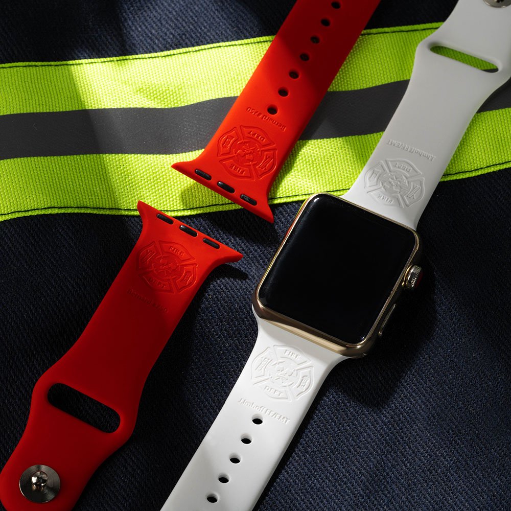 Honor the bravery and dedication of firefighters and first responders with this custom watch band featuring engraved firefighter symbols and the recipient's name.