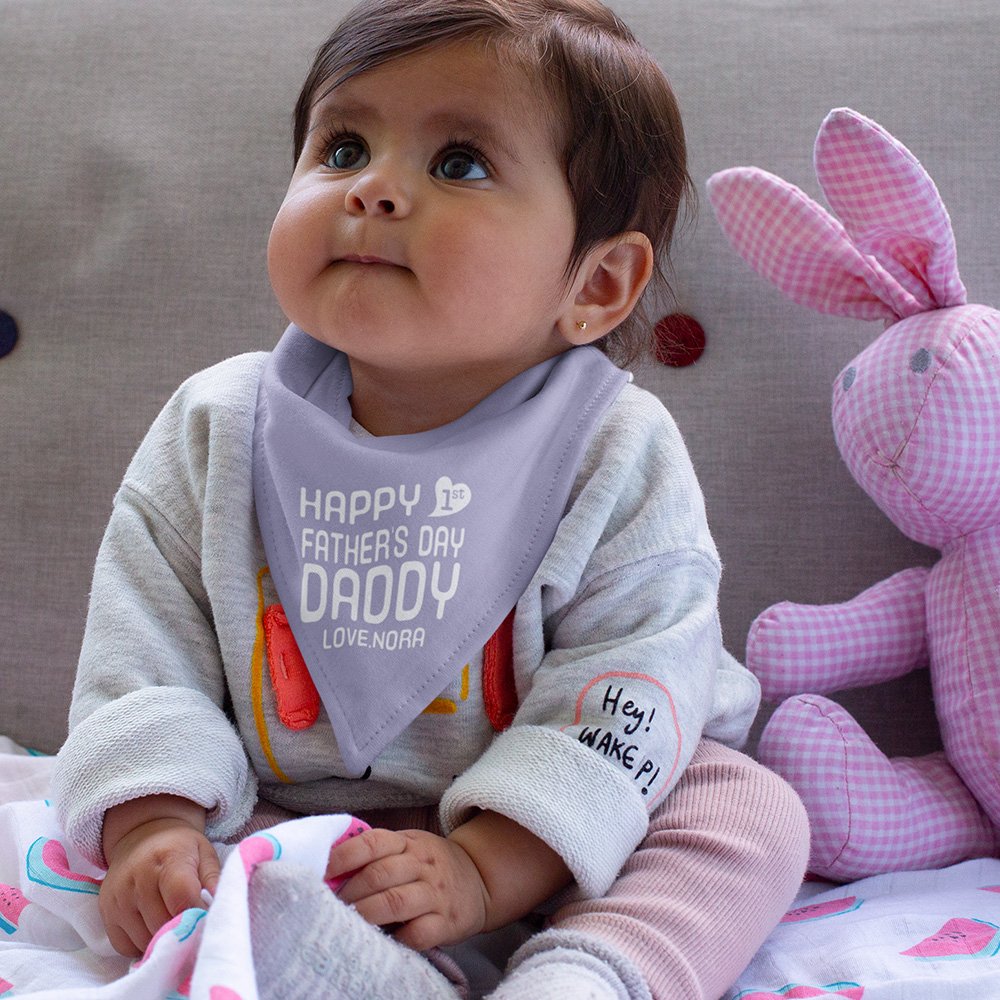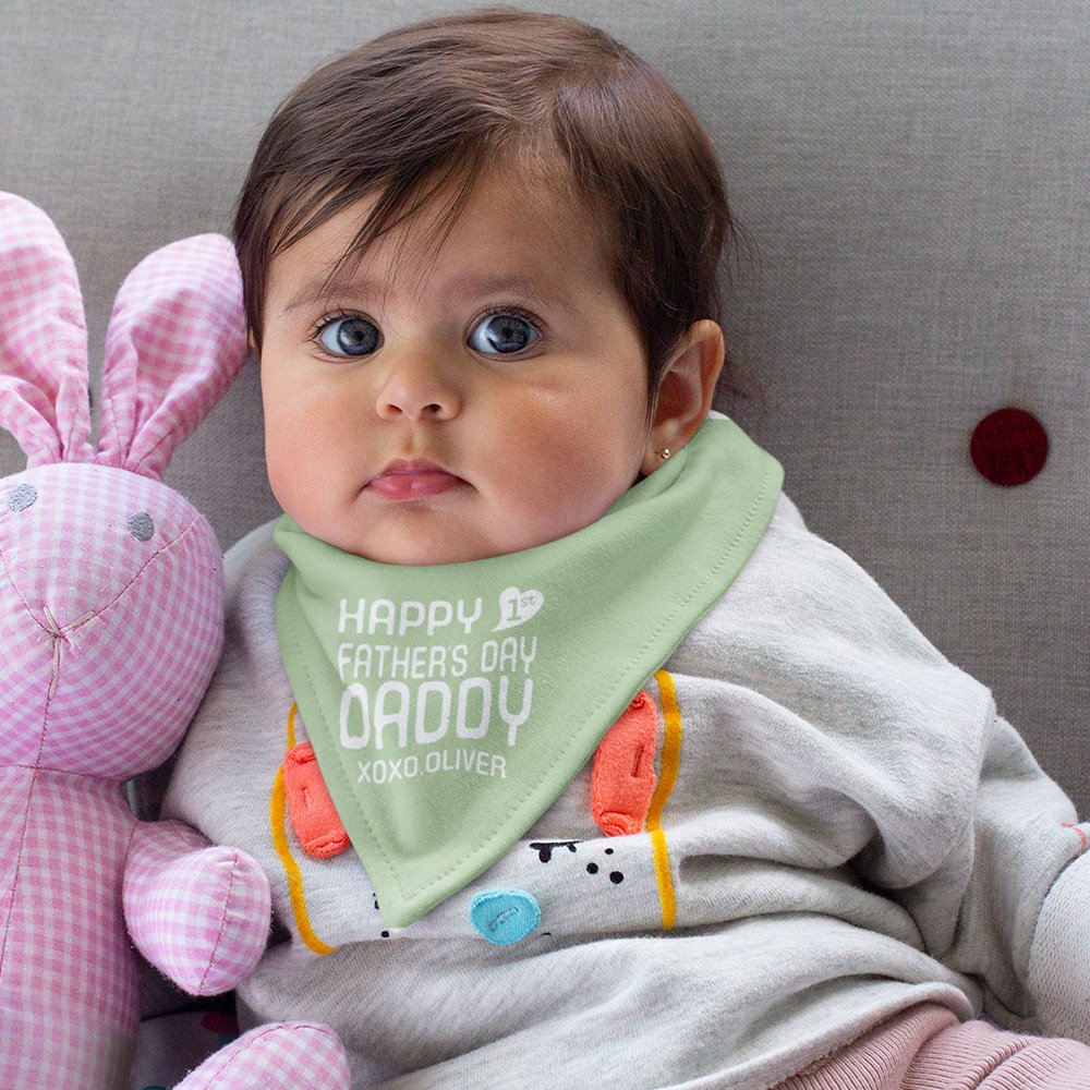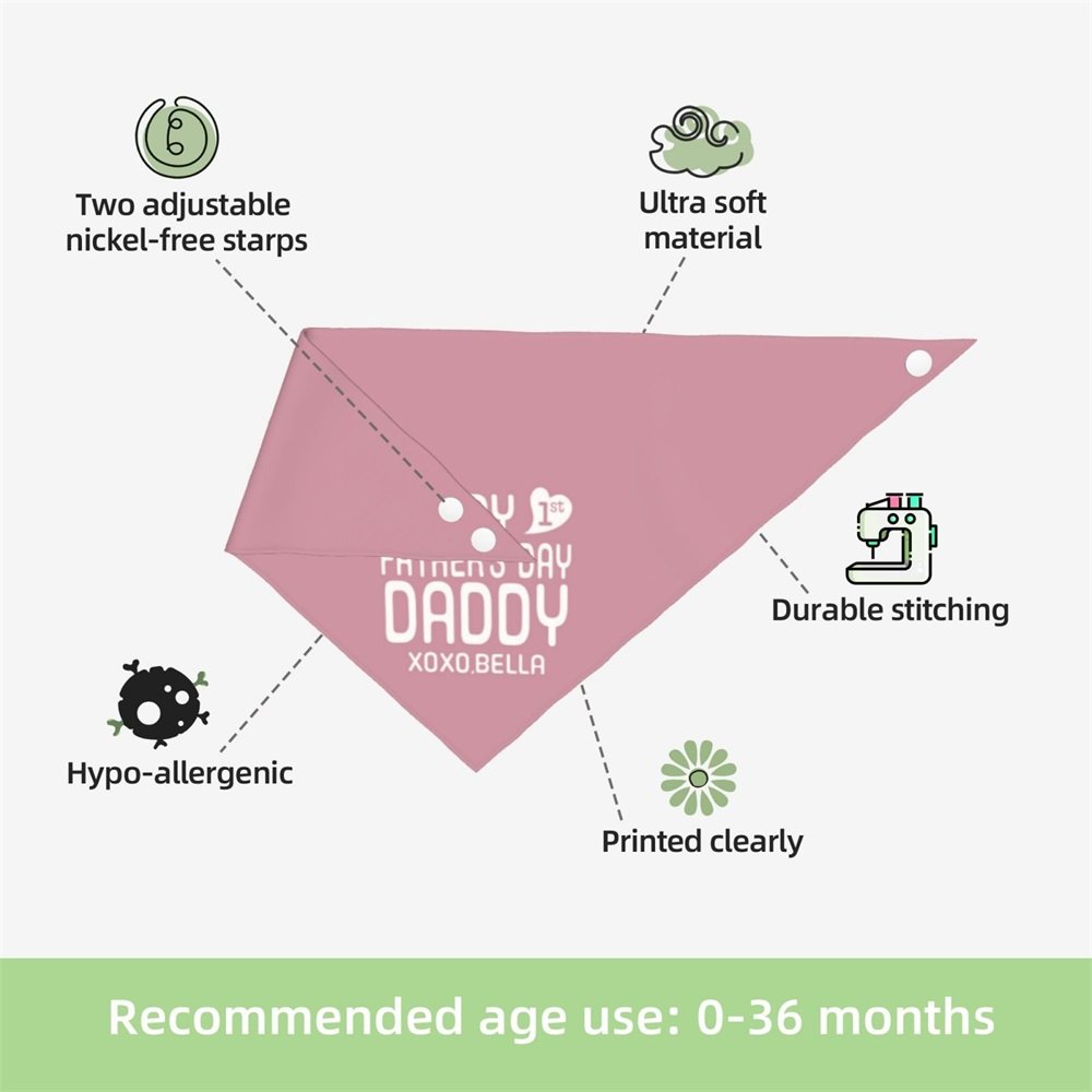 Printed with the "Happy 1st Father's Day" warm blessing, it not only adds to the festive atmosphere but also expresses the baby’s deep love for dad. Customized text design allows you to create a unique and exclusive gift for new fathers. The bib has 8 cute color styles to choose from.