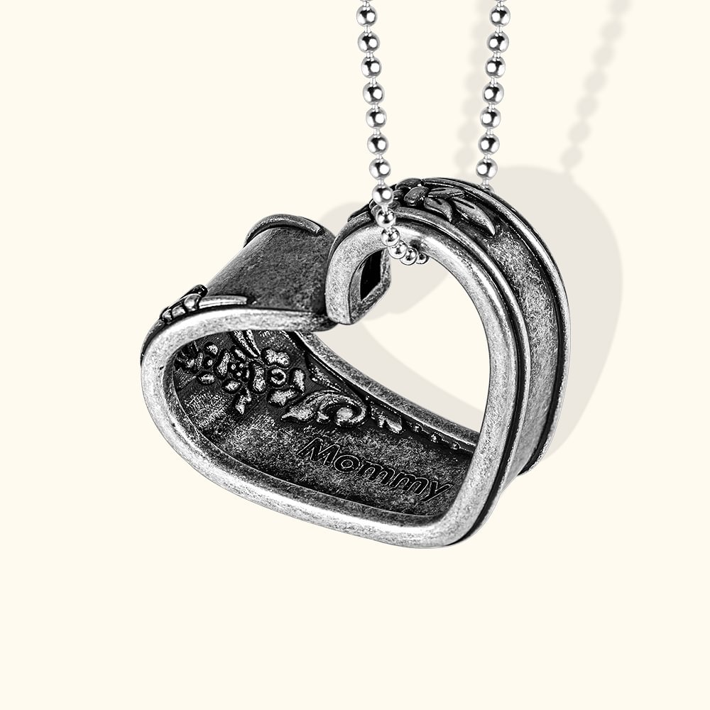 Personalised Floating Heart with Floral Pattern Spoon Vintage Necklace For Women