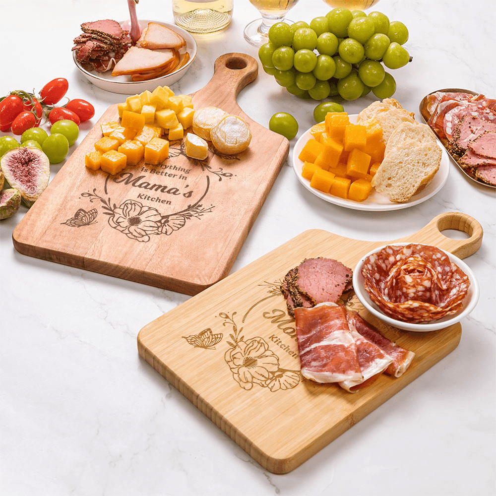 Featuring an elegant floral and butterfly-engraved design, this board combines delicate flower vines and vivid butterflies surrounding custom text. The reversible design balances stunning appearance with practicality. Personalised text engraving is supported, allowing you to customize exclusive text. Each board serves as a unique carrier of life aesthetics, suitable for a variety of home styles.