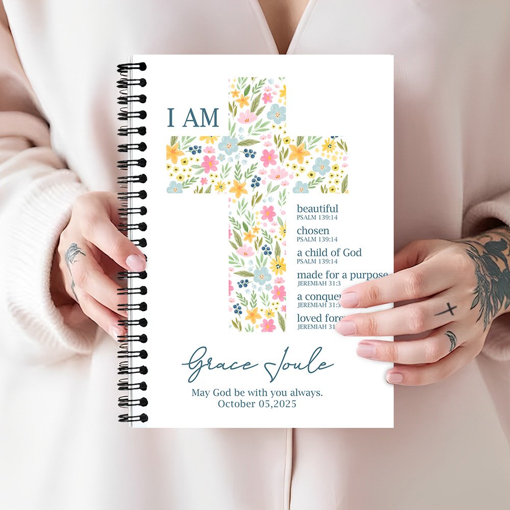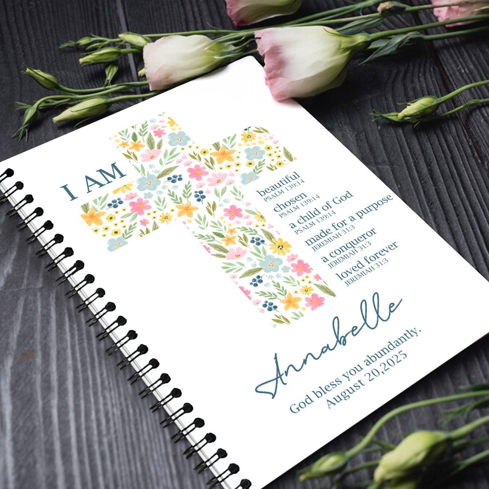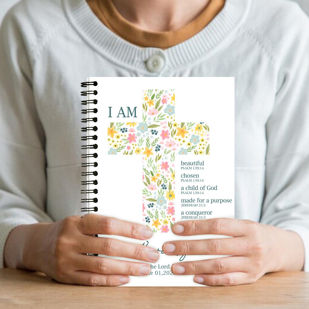This notebook features a beautiful floral cross pattern on the cover, symbolizing the beauty of life and the power of faith. Paired with inspiring Bible verses, these words are not only inspiring but also bring daily encouragement and inspiration to users. Personalised name and date make this notebook a special gift to record important moments in life.