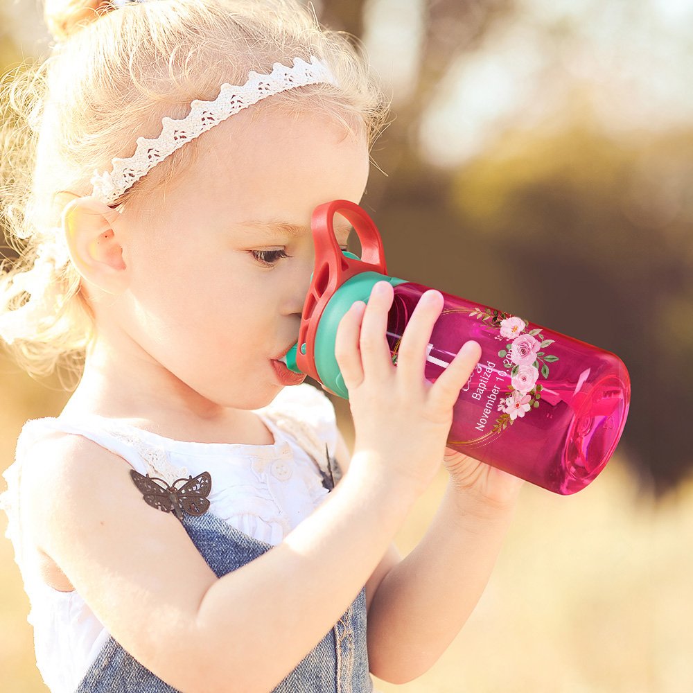 This Personalised 16 oz kid water bottle features a delightful floral or leaf cross design, making hydration fun and stylish by customizing the unique text on it. Its eye-catching aesthetics appeal to both boys and girls, encouraging them to stay hydrated throughout the day.