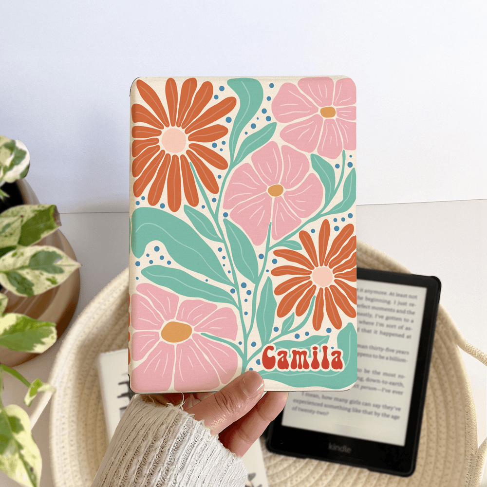 This Kindle case features a Personalised floral design. Each design features a unique floral motif in a distinctive style, paired with a customizable name font, perfectly blending natural aesthetics with a sense of exclusivity. You can freely choose the floral pattern, along with the color and font of your name, creating a vibrant and lively design that's your unique reading companion. It transforms your everyday reading tool into a stylish accessory that showcases your personal style.